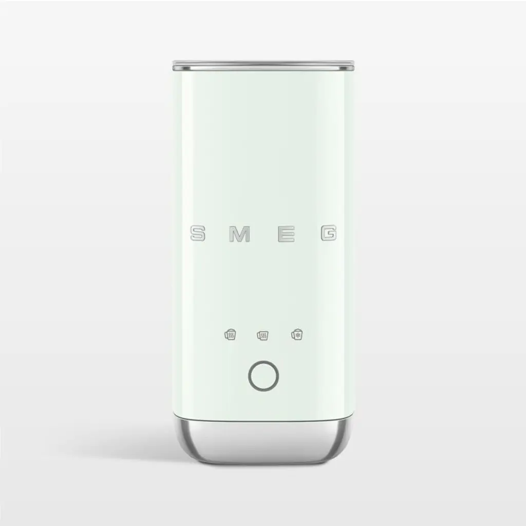 Whip up perfectly foamed milk with this mini milk frother that brings vintage charmto your countertop or coffee cart. Whether you're craving a warm latte, iced cappuccino or a perfect cup of hot chocolate, this charming frotherlove those chromed accentsaerates hot or cold milk into foam and serves as a milk warmer as well.Known for its wonderfully retro refrigerators, SMEG has launched a joyfully designed kitchen appliance collection based on the curved and compact lines of postwar design. SMEG's nod to the past is the star of today's kitchen, updated with all the current advances in technology.
