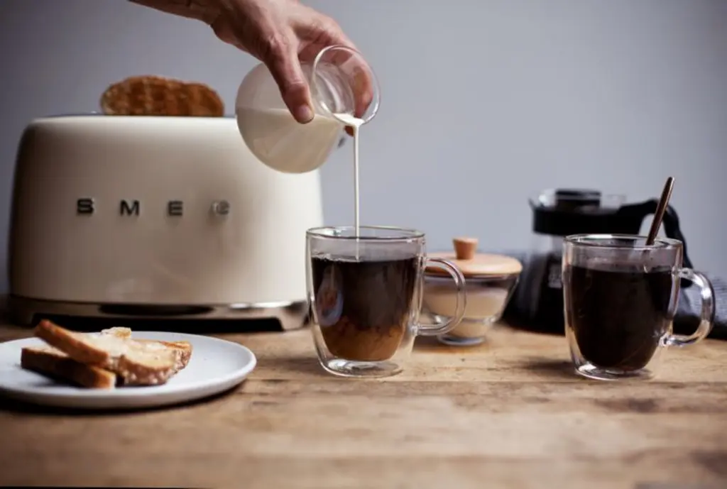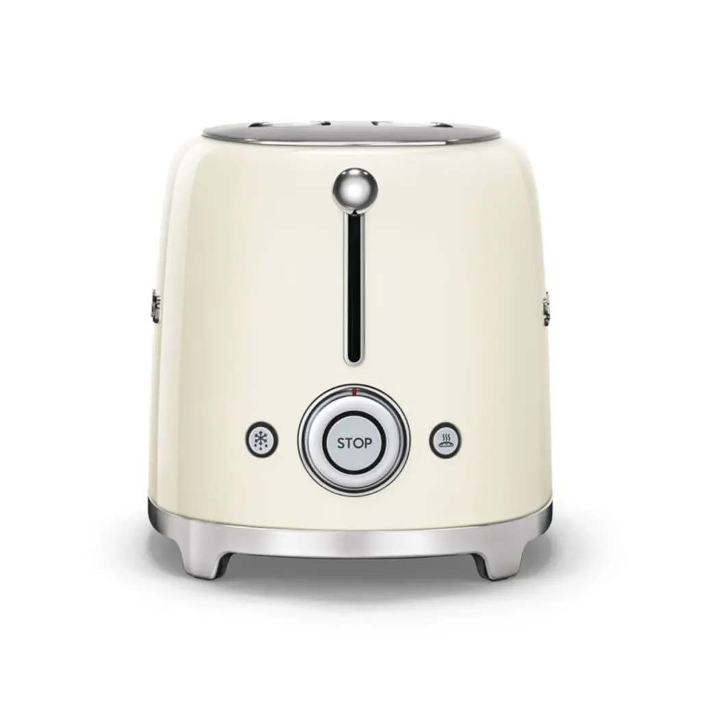 Enameled in creamy white and accented with a charming ball lever knob, this retro two-slice toaster browns bread, bagels and more at six levels with three convenient pre-set programs. Two extra-wide slots accommodate different slice widths, and self-centering racks ensure even toasting.Known for its wonderfully retro refrigerators, SMEG has launched a joyfully designed retro kitchen appliance collection based on the curved and compact lines of postwar design. SMEG's nod to the past is the star of today's kitchen, incorporating all the current advances in technology.