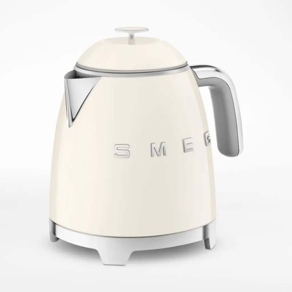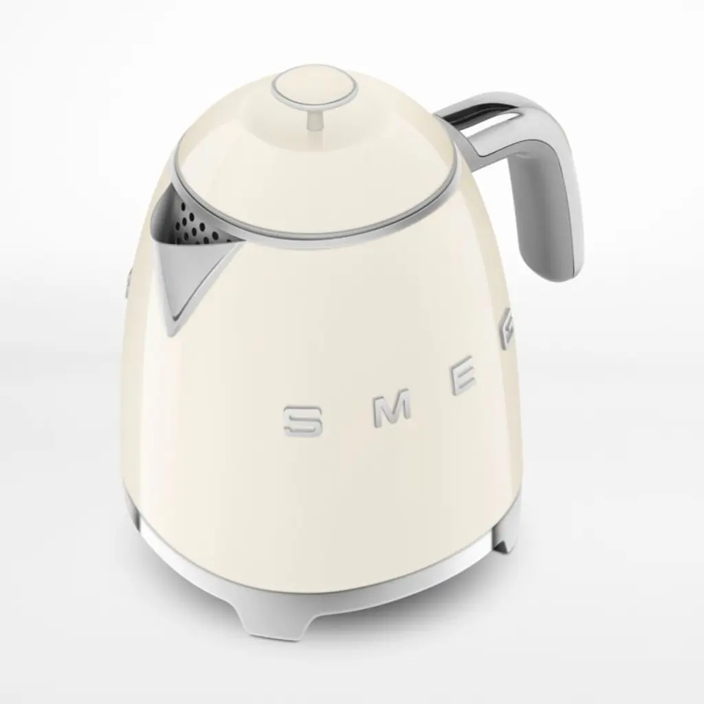 With its charming bullet shape and fun chrome metal accents, this mini electric kettle finished in glossy cream goes beyond basics. Featuring a double-walled stainless steel interior and stay-cool exterior, this delightfully diminutive kettle is perfect for making tea and pour-over coffee for one or two.Known for their wonderfully retro refrigerators, SMEG has launched a joyfully designed kitchen appliance collection based on the curved and compact lines of postwar design. Incorporating a 1950s-era aesthetic, SMEG's nod to the past is the star of today's kitchen, incorporating all the current advances in technology