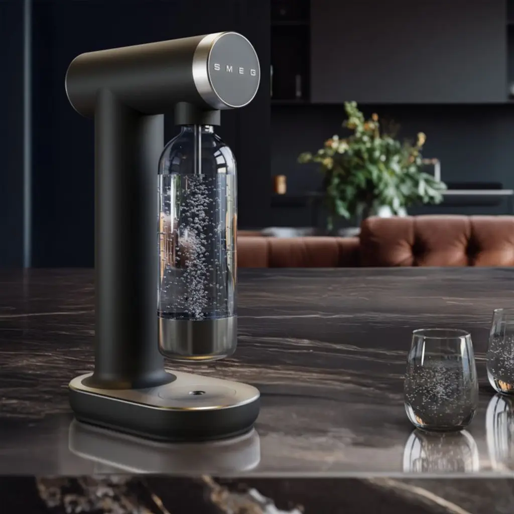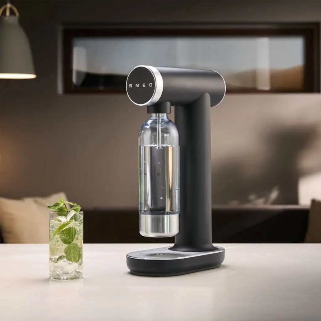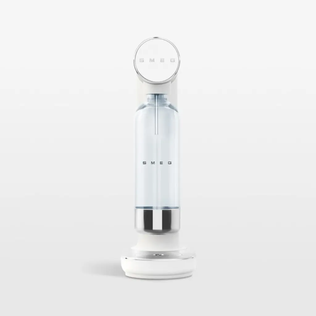 Add some fizz to daily hydration goals with sparkling water made right in your own kitchen. Featuring SMEG's signature design and innovative functionality, the appliance effortlessly carbonates still water while looking swell on the countertop. To add bubbles to your H2O simply fill the 1-liter bottle, twist it onto the machine and turn the front knob clockwise one to three times for the desired amount of carbonation.Known for its wonderfully retro refrigerators, SMEG has created a joyfully designed kitchen appliance collection based on the compact, curved lines of postwar design. SMEG's nod to the past is the star of today's kitchen, incorporating all the current advances in technology while celebrating vintage aesthetics.