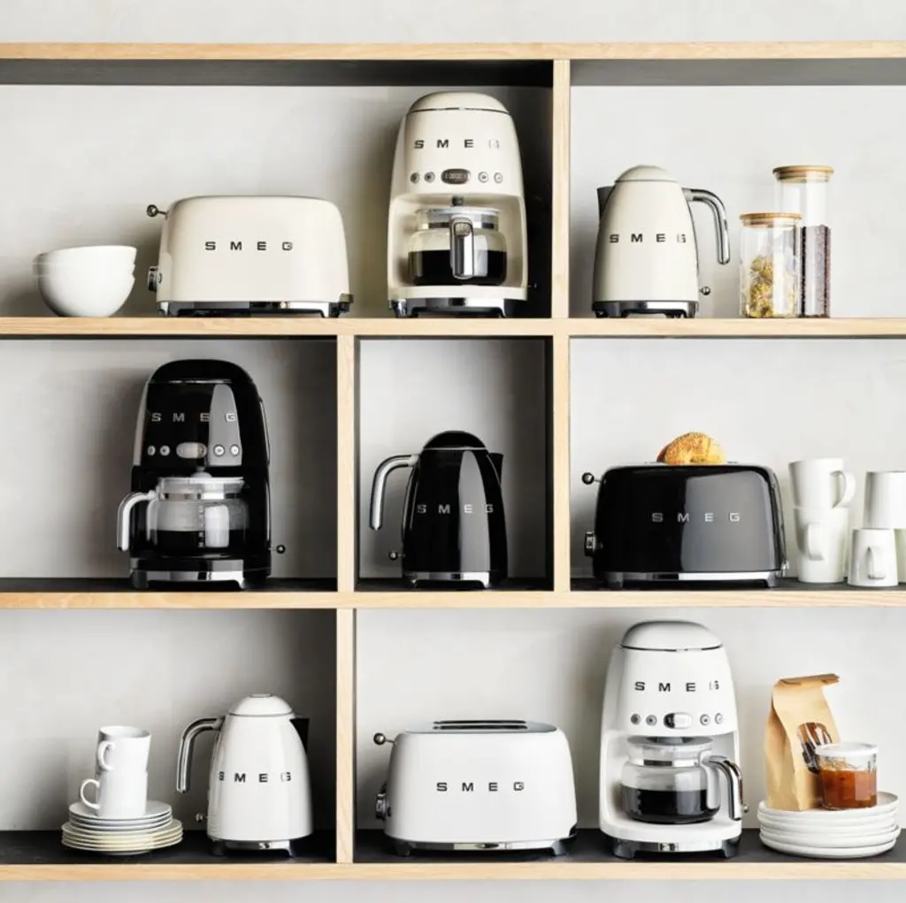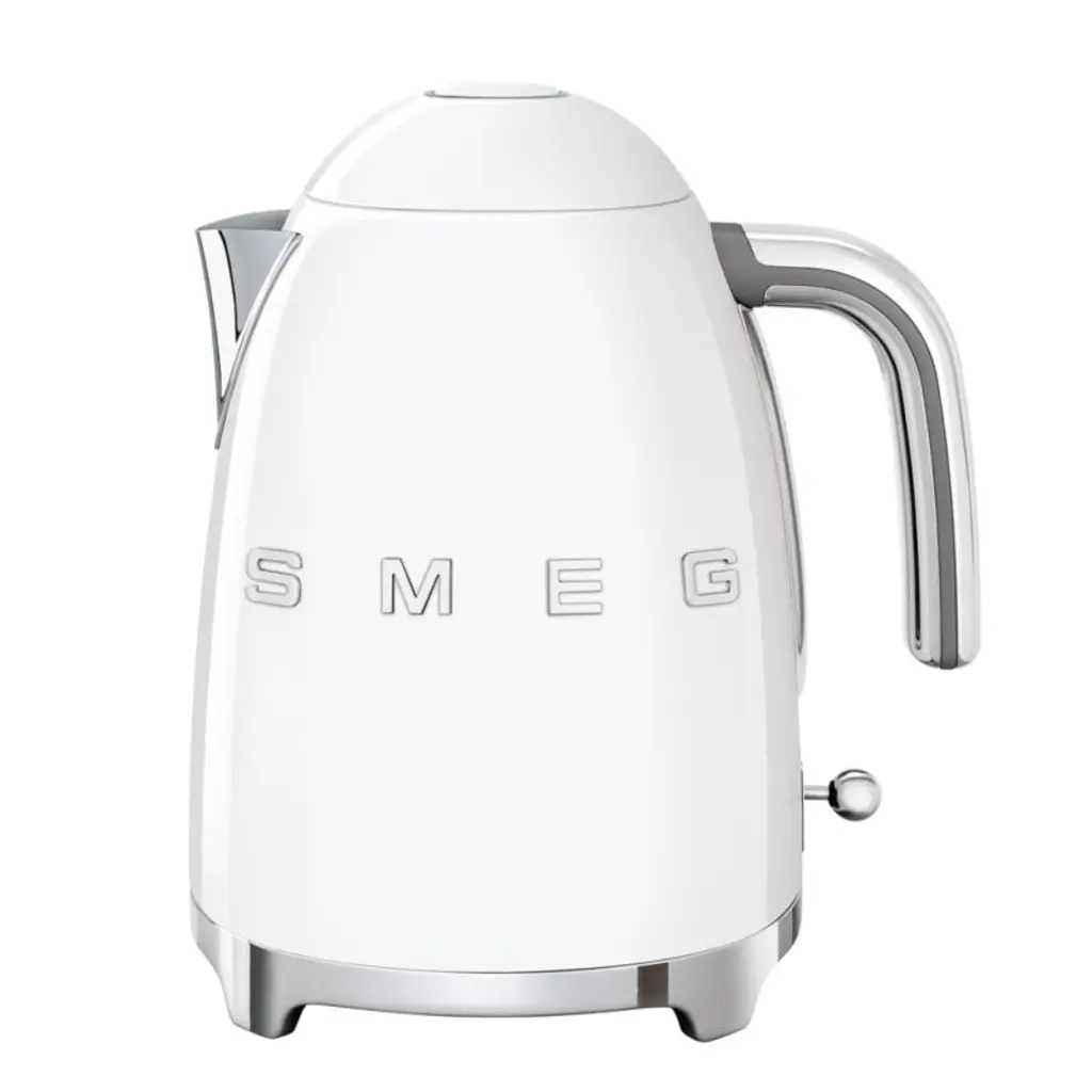 With its charming bullet shape and fun chrome metal accents, this glossy white electric kettle goes beyond basics with a soft-opening lid to manage steam release and a swivel base that rotates full circle. The stainless steel kettle heats water quickly for tea, French press coffee and tisanes.Known for its wonderfully retro refrigerators, SMEG has launched a joyfully designed kitchen appliance collection based on the curved and compact lines of postwar design. Incorporating a vintage aesthetic, SMEG's nod to the past is the star of today's kitchen, incorporating all the current advances in technology.