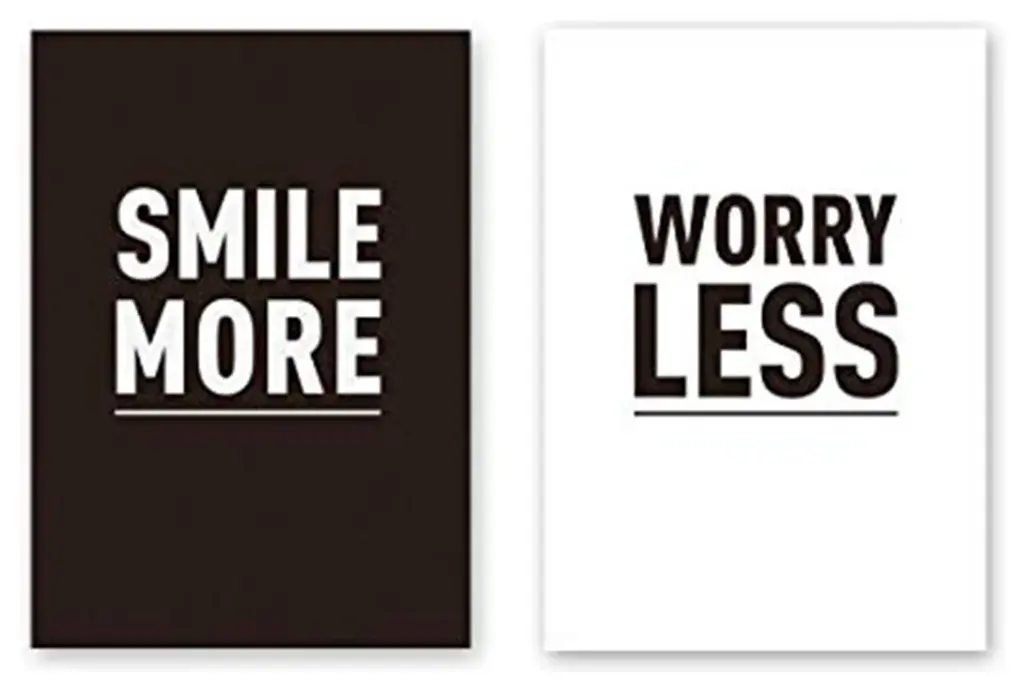 Keep this bold reminder on your wall. "œWorry less"� and live a happy and optimistic life. The simple, monochrome colors scheme used ensures that the message in the text truly stands out with no distractions. It will work well alongside other motivational typographic pieces or even with more artistic canvasses that you may already have in your home. Hang this work of art in rooms where you might need a boost to your moods such as your bedroom or workspace. Another idea is to hang it in your hallway near your front door so it"™s the last thing you see as you exit your home for a day of positive thinking and minimal worrying.Features:- Original design- Gallery quality cotton canvas and solid wood frame- Made in USA- Gallery wrapped canvas art- Sawtooth hangers installed- Wipe with damp cloth