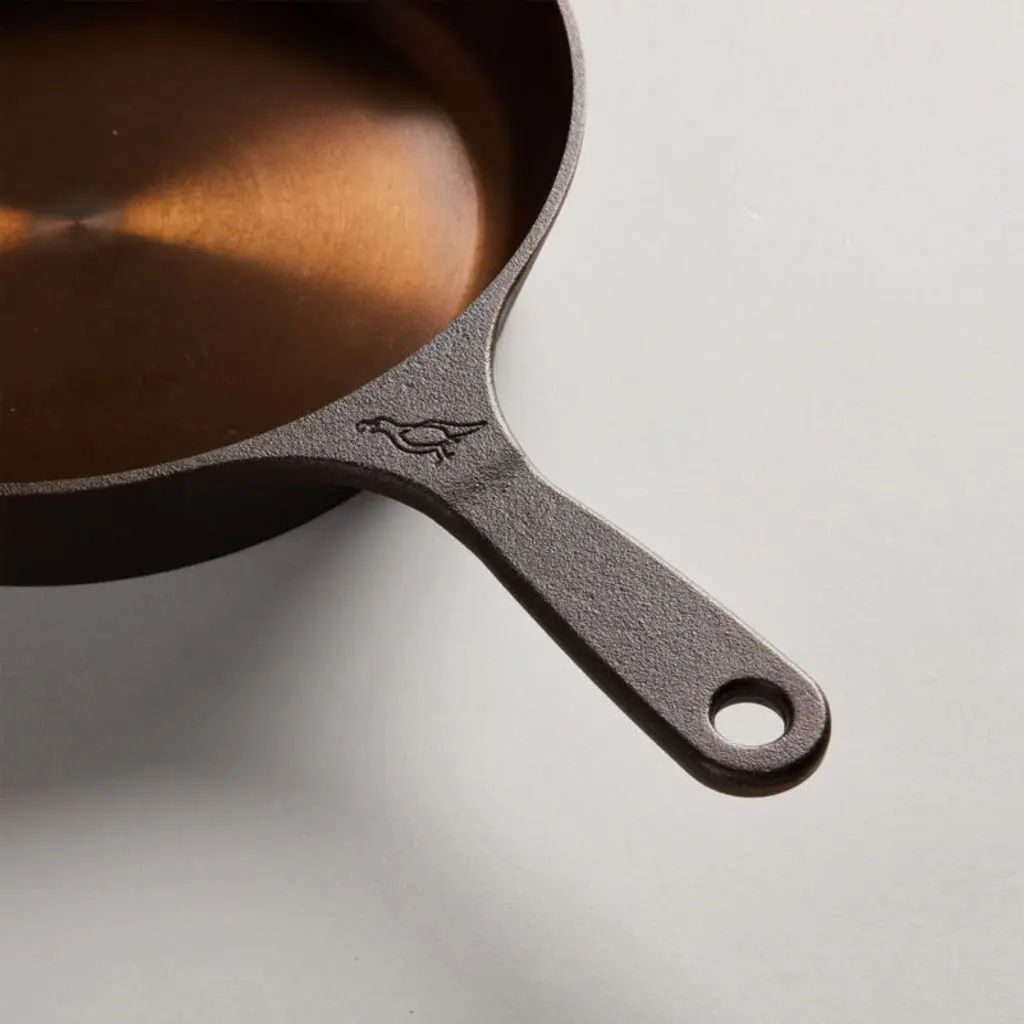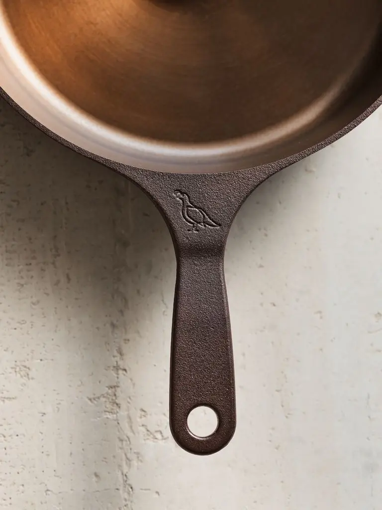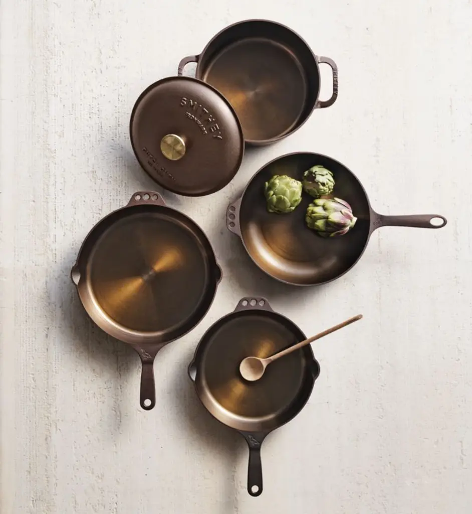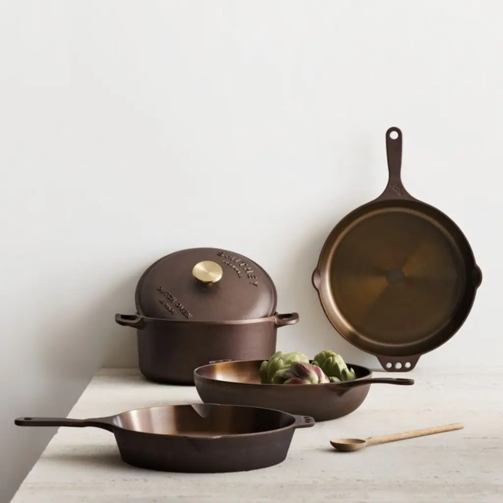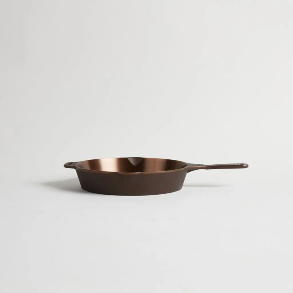 This gorgeous skillet from Smithey stuns on the stove and table thanks to its copper-hued seasoning and gleaming polished interior. Inspired by vintage skillets, the No. 10 pan is ideal for sauteing mushrooms, roasting root vegetables and baking cornbread. The naturally non-stick seasoning ensures easy cleanup, whether you're cooking on the stove, on the grill or over a campfire. Designed to become an heirloom, the skillet improves with daily use and will blacken to a classic cast iron patina with use.