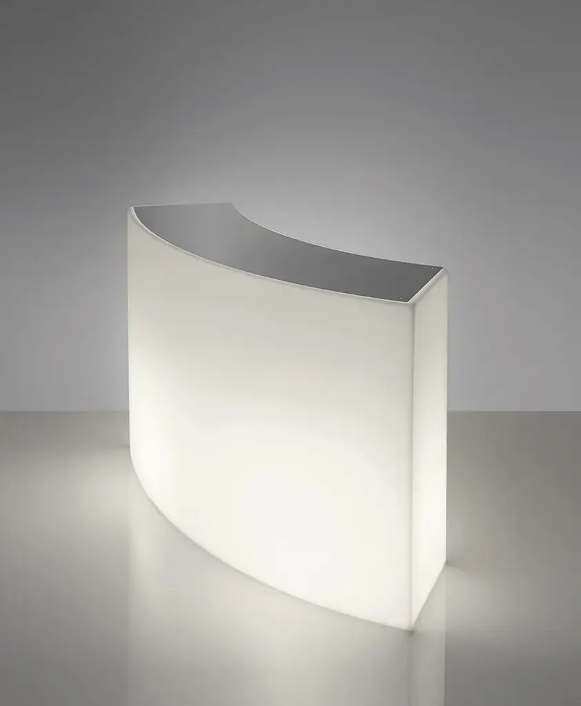 Snack Bar is a modular and luminous bar counter that is able to create a perfect blend of shape and functionality. As the other luminous display that make Slide famous all over the world, Snack Bar can be a reception desk or a bar counter. A single Snack Bar is ideal to small areas, many Snack Bar, matched with other luminous displays are ideal in large spaces. Snack Bar is suitable for indoor and outdoor of contemporary settings. The modular and luminous bar counter is made in polyethylene and it is customizable with logos and images.Snack Bar is available in 2 variants:- Standard- With light (2 x 15W - G95 / E27 or RGBW LED module with rechargeable battery)The worktop can be in glass or stainless steel.