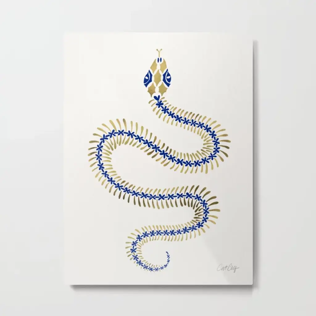 Snake Skeleton – Navy & Gold Palette Metal Print