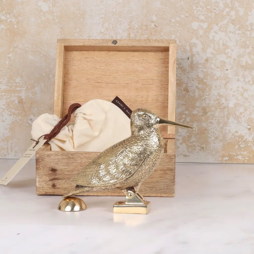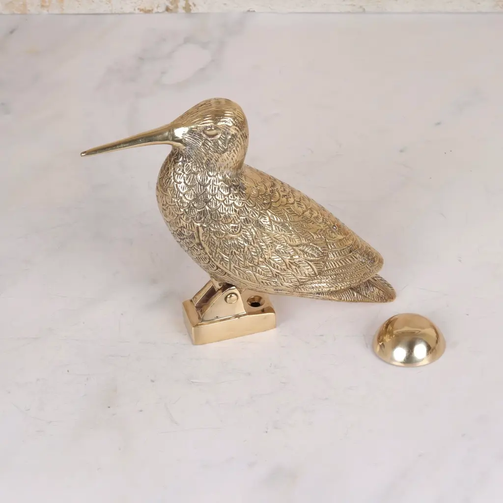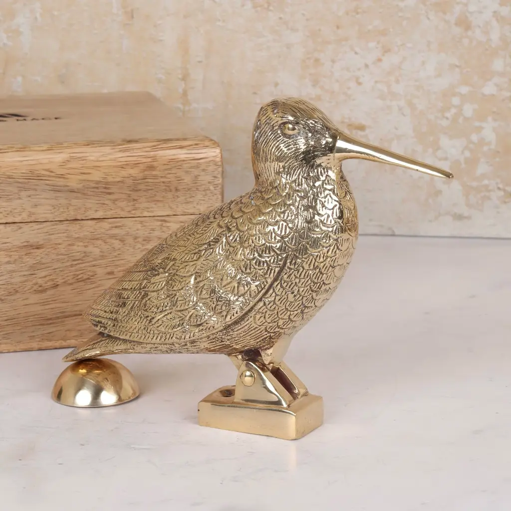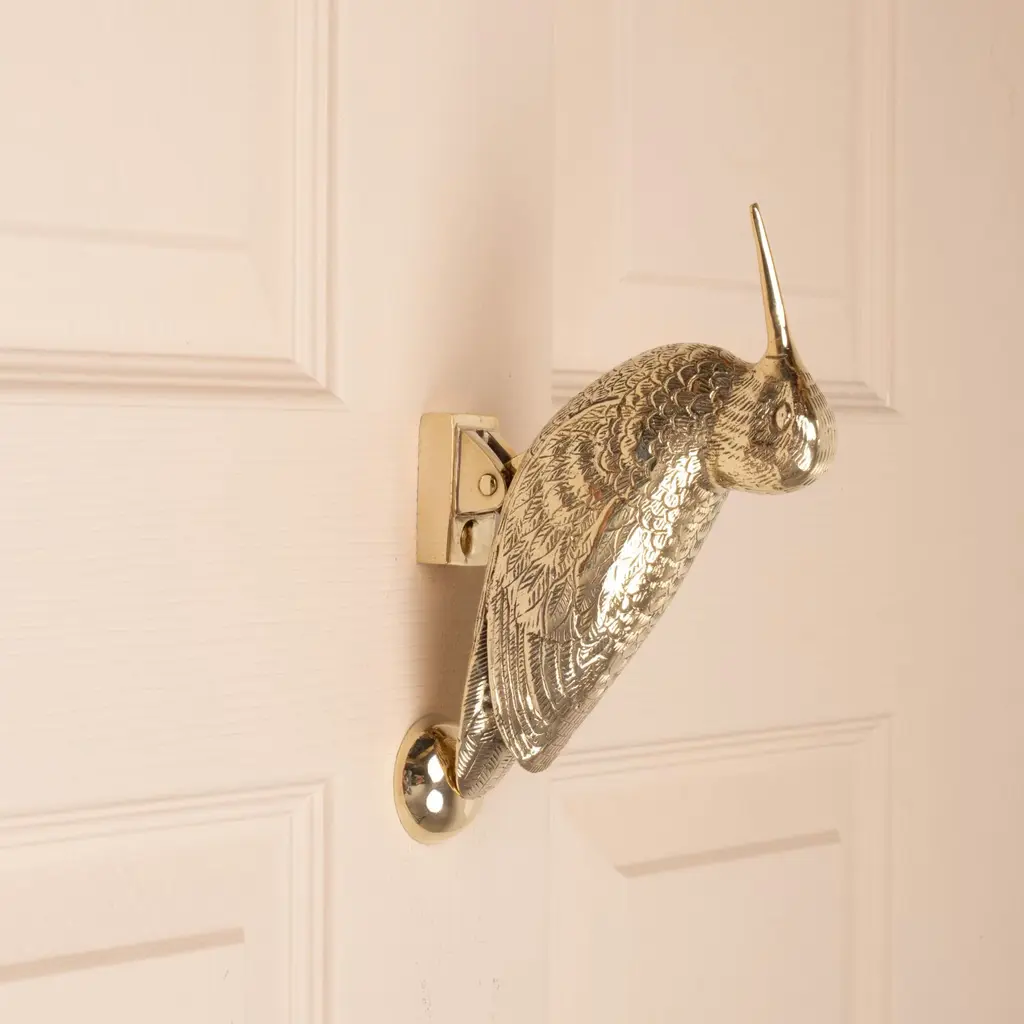 This beautifully crafted Snipe Door Knocker features the elegant form of this shy wading bird, complete with a long beak and slender body. It knocks with its tail, creating a clear, satisfying sound, while a specially designed bracket ensures the beak never touches the door. Cast from solid brass and handcrafted using traditional techniques, each piece is engraved with the maker’s mark and may show subtle variations that make it truly unique. Suitable for wooden and solid core composite doors. Surface-mounted with fixings included. Presented in a wooden gift box with a branded dust bag. Other finishes available—see our website for details.