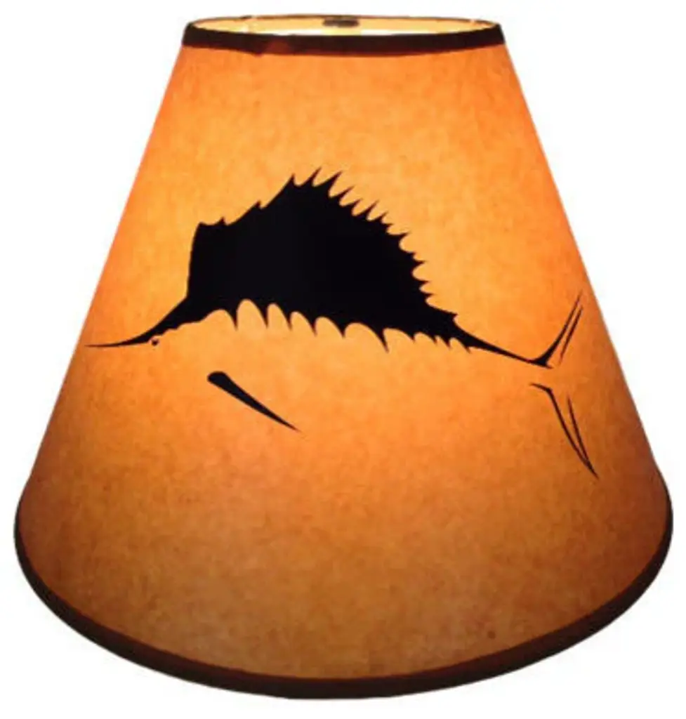 Faux oil kraft lamp shade This rustic shade measures:4"(top)9"(bottom)7"(slant)This shade has standard brass-plated clip-on clip for standard A bulb use
