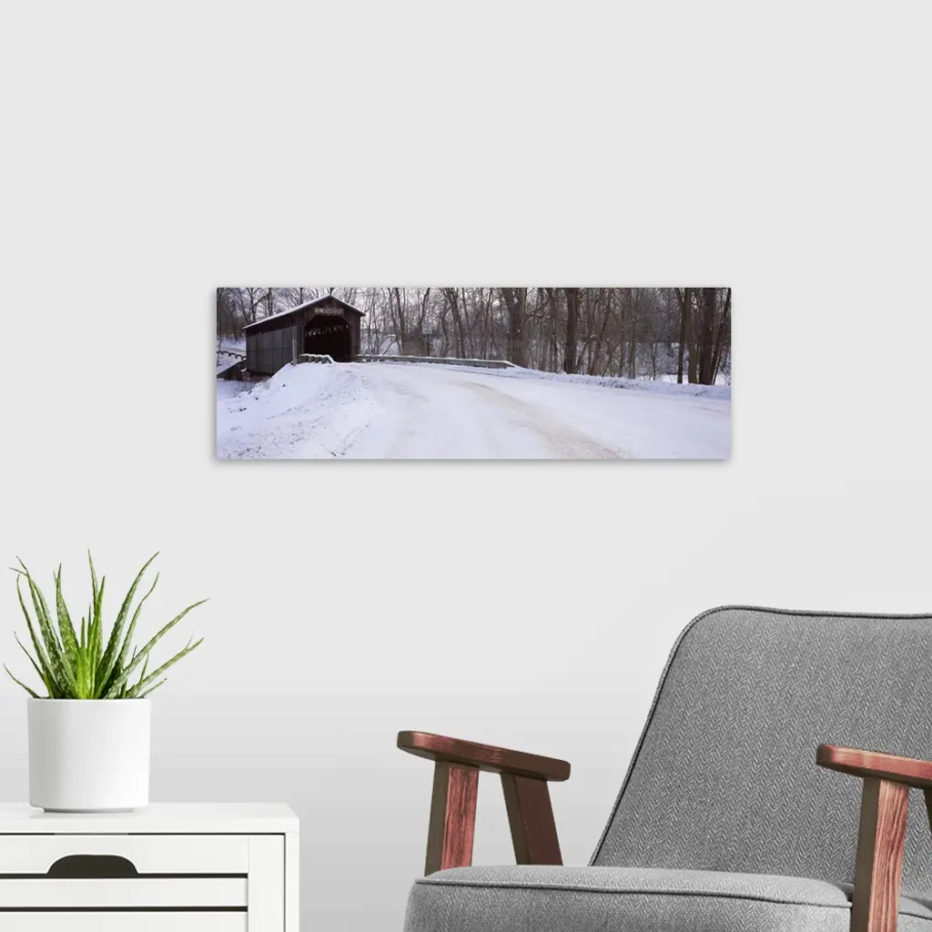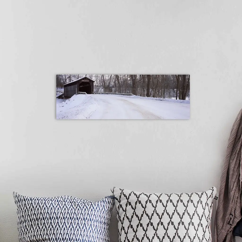 Snow covered bridge in a forest, Grand Rapids, Kent County, Michigan wall art for home and office decor. Discover canvas art prints, photos, mural, big canvas art and framed wall art in GreatBigCanvas.com's varied collections.