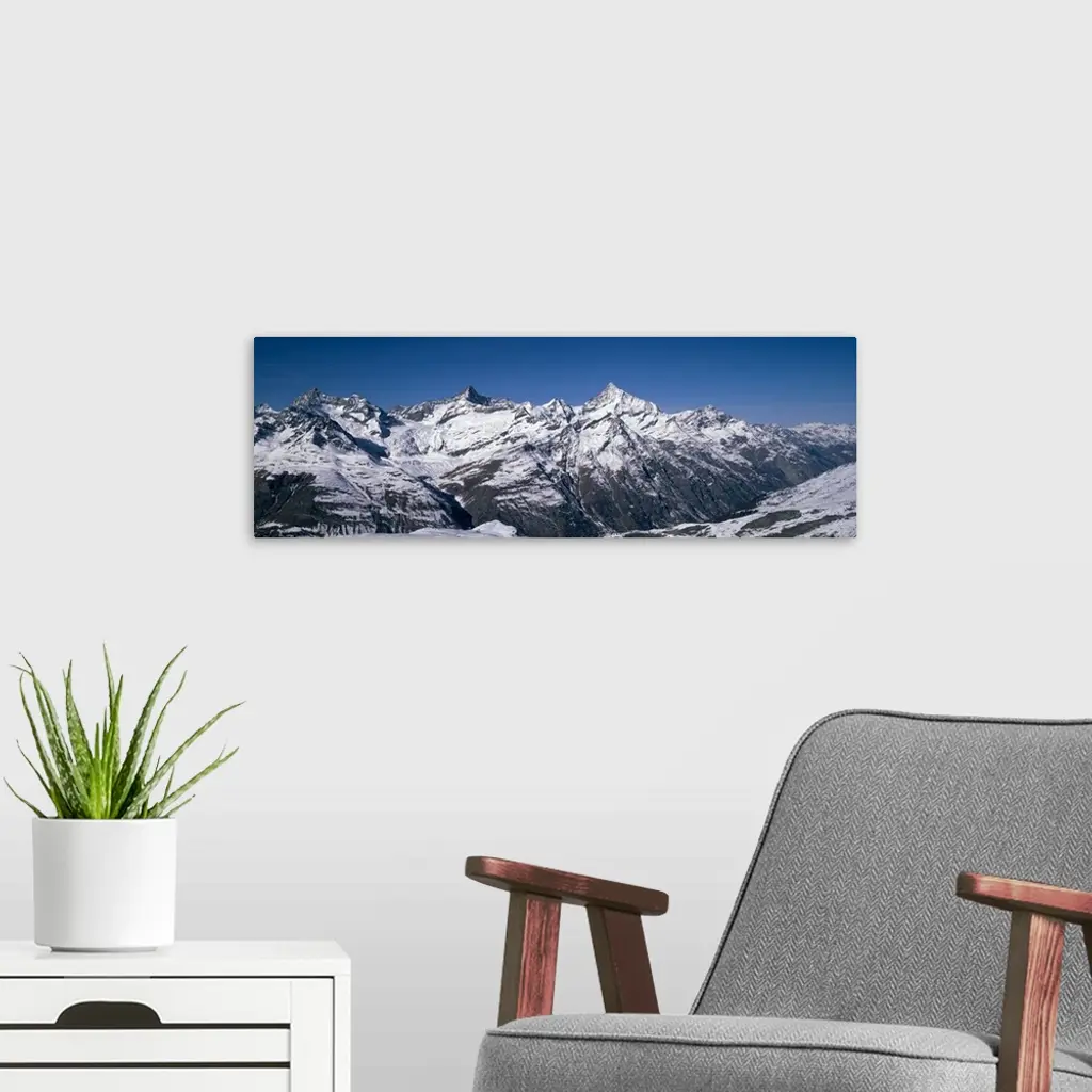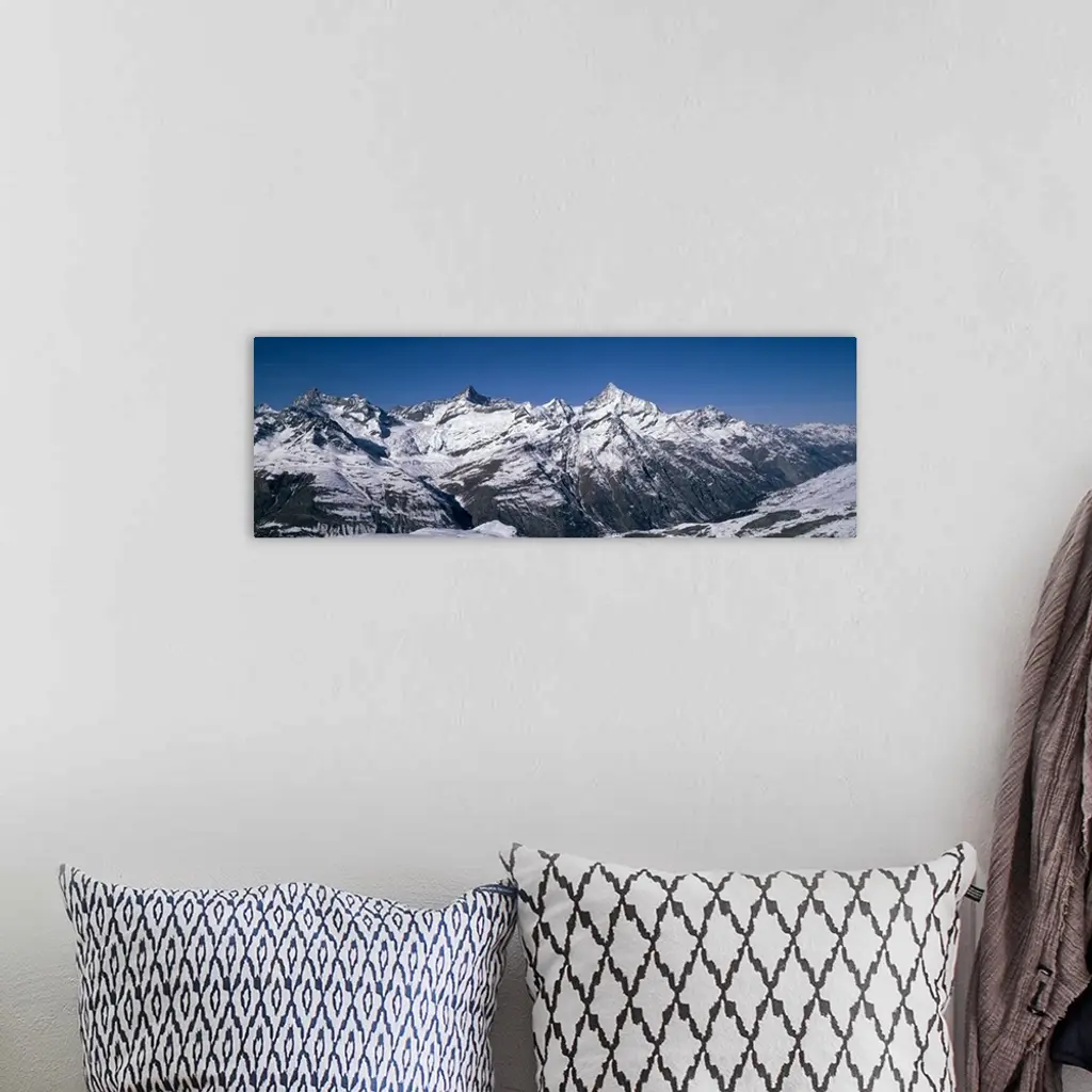 Snow covered mountains at morning light, Gornergrat, Valais Canton, Switzerland wall art for home and office decor. Discover canvas art prints, photos, mural, big canvas art and framed wall art in GreatBigCanvas.com's varied collections.