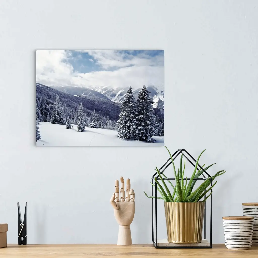 Snow Covered Pine Trees On Mountain, Aspen, Colorado wall art for home and office decor. Discover canvas art prints, photos, mural, big canvas art and framed wall art in GreatBigCanvas.com's varied collections.
