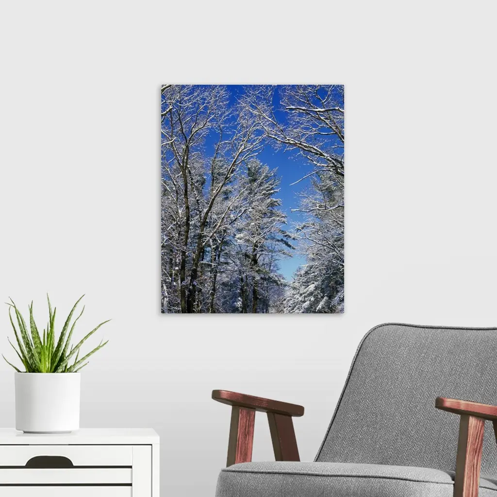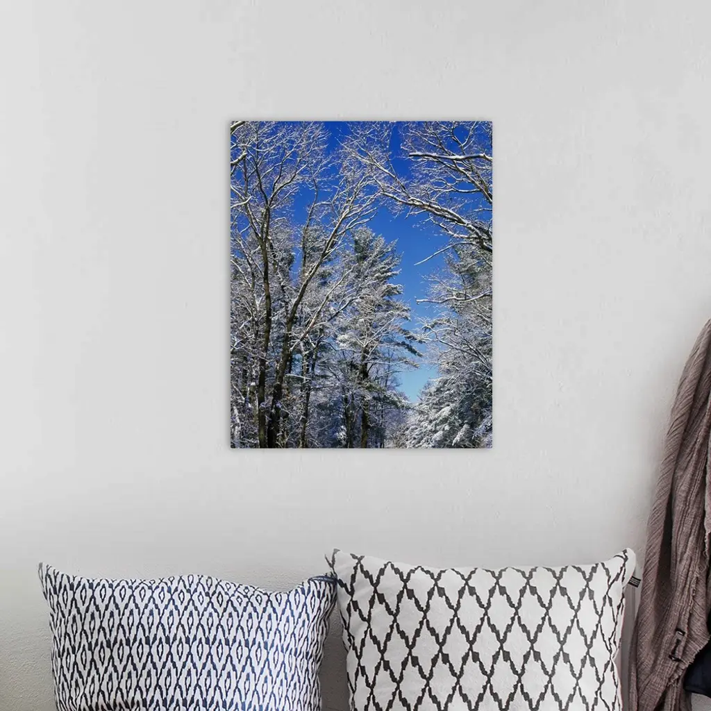 Snow-covered trees against blue sky, Backbone State Park, Iowa wall art for home and office decor. Discover canvas art prints, photos, mural, big canvas art and framed wall art in GreatBigCanvas.com's varied collections.