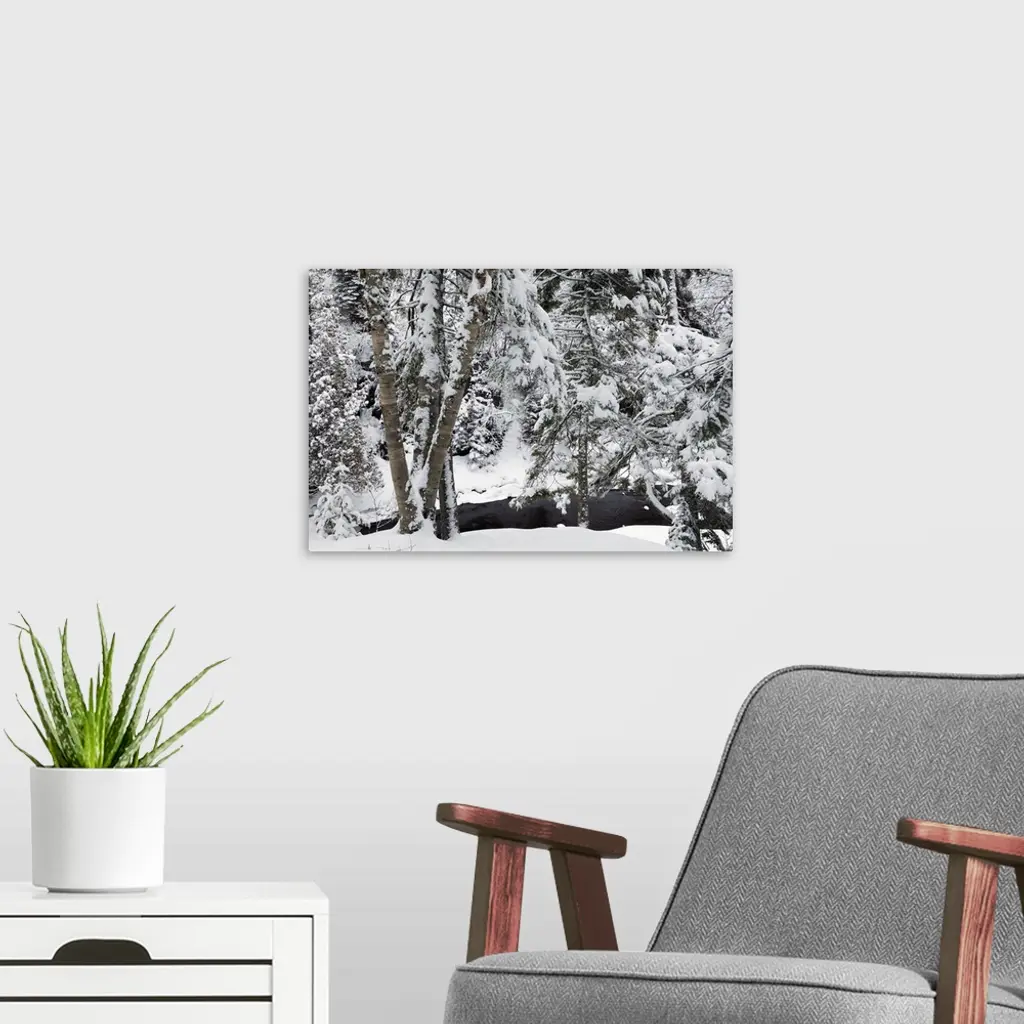 Snow-covered trees along Cascade River, Cascade River State Park, Minnesota wall art for home and office decor. Discover canvas art prints, photos, mural, big canvas art and framed wall art in GreatBigCanvas.com's varied collections.