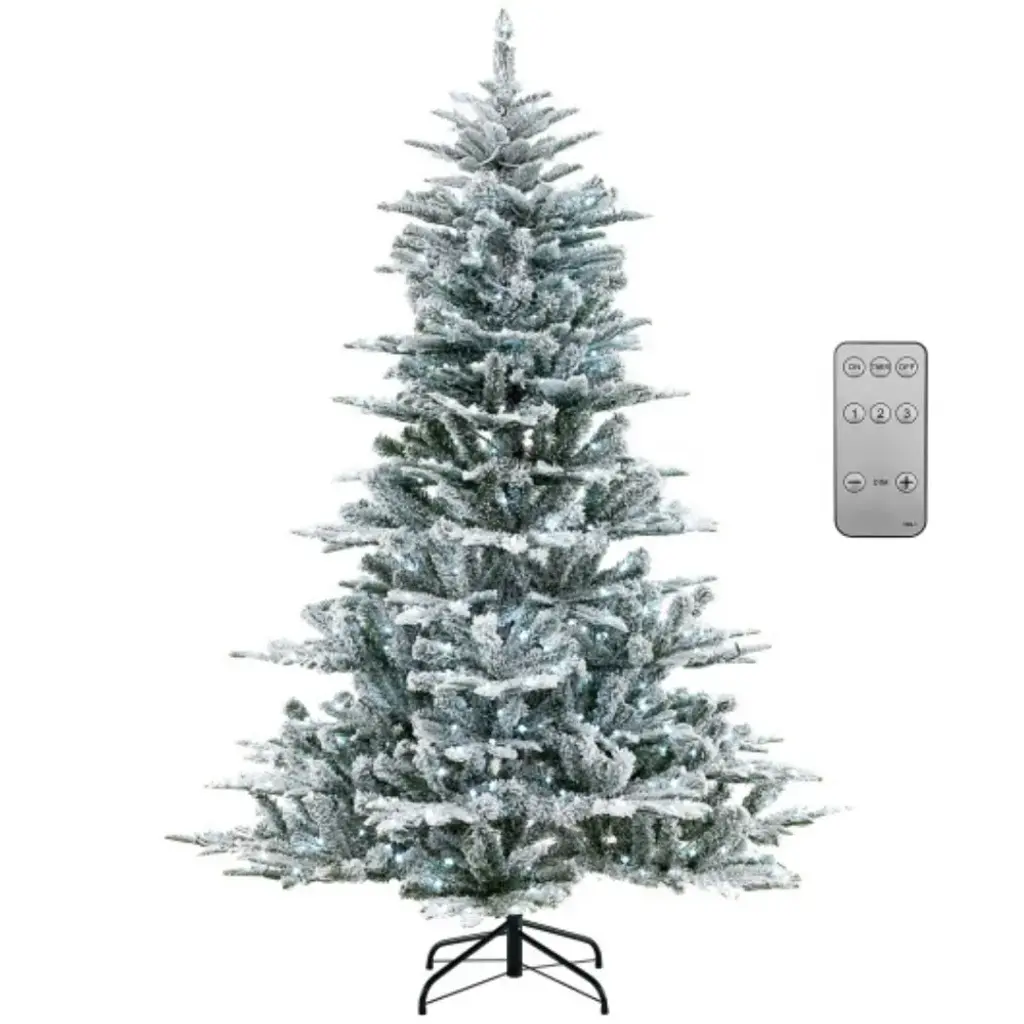 Snow Flocked Artificial Christmas Tree With Cool White Led Lights - 6 Foot