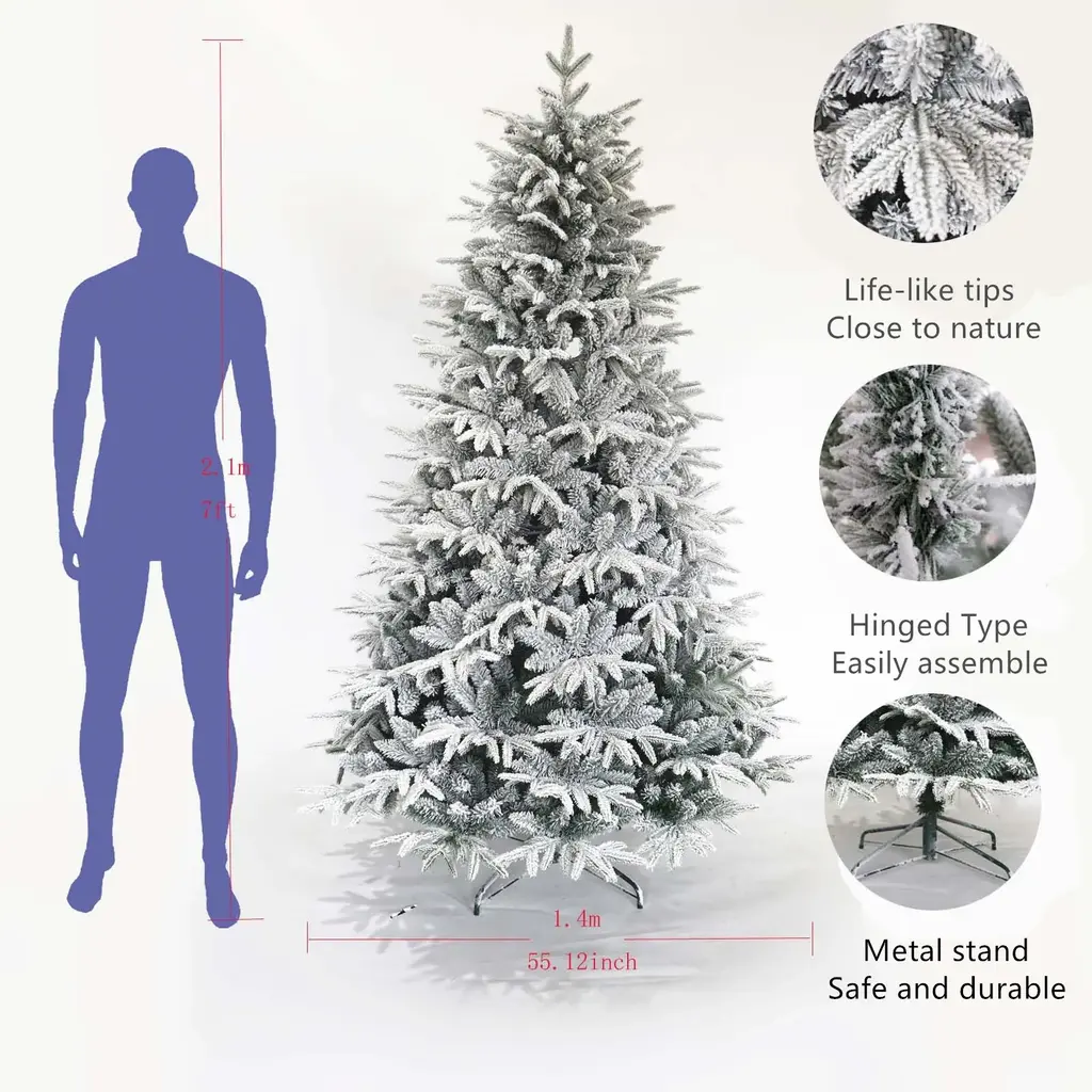 Snow Flocked Christmas Tree 7Ft Artificial Hinged Pine Tree - 7 Foot