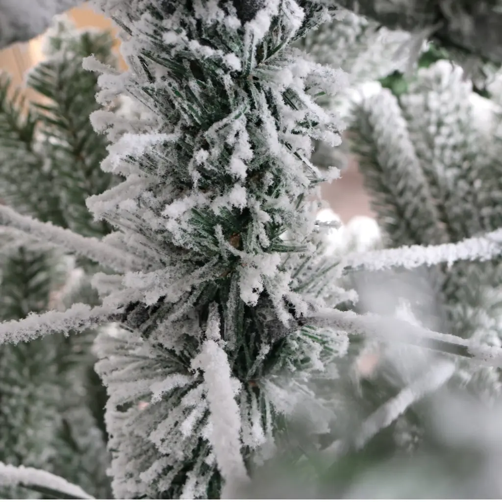 Snow Flocked Christmas Tree 7Ft Artificial Hinged Pine Tree - 7 Foot