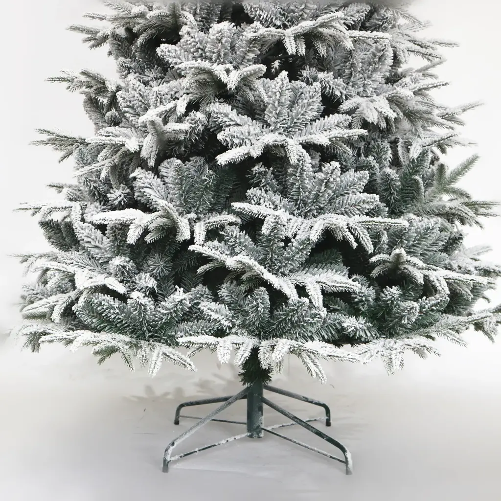 Product Features:[SNOW FLOCKED & REALISTIC APPEARANCE]:7ft Crafted with 1100 snow flocked branches make this Christmas tree looks leafy.And as it is simple style,there are no extra decorations on the tree.You can decorate it according to your preference.[EASY To FLUFF AND ASSEMBLE]:All hinged construction makes the artificial tree easy to fluff,saving you a lot of time and effort.In addition, the tree can be divided into 3 sections ,you can place it in the tree storage bag and store it until next year.[STURDAY AND DURABLE MEATAL STAND ]:The snow flocked tree equipped with a X-shaped iron stand improves stability and keeps the tree upright all season.Compared to other plastic bases, the metal base is more stable providing stronger support throughout the year.Besides, the sturdy metal stand can be foldable and easy to storage.[HIGH QUALITY MATERIAL]:Made of non-flammable and non-allergenic PVC and PE material, the Christmas tree is not only wondrous but also realistic and safe.[EYE CATCHING ADDITION FOR ANY PLACE]:There is no doubt that the brilliant Christmas tree is a glamorous decoration for any place.You can put it at home to make your room full of Christmas flavor and enjoy Christmas with your family pleasantly.Or it can be placed in commercial places such as shops, hotels, etc. to attract the attention of the guests and make your business better.Specification: