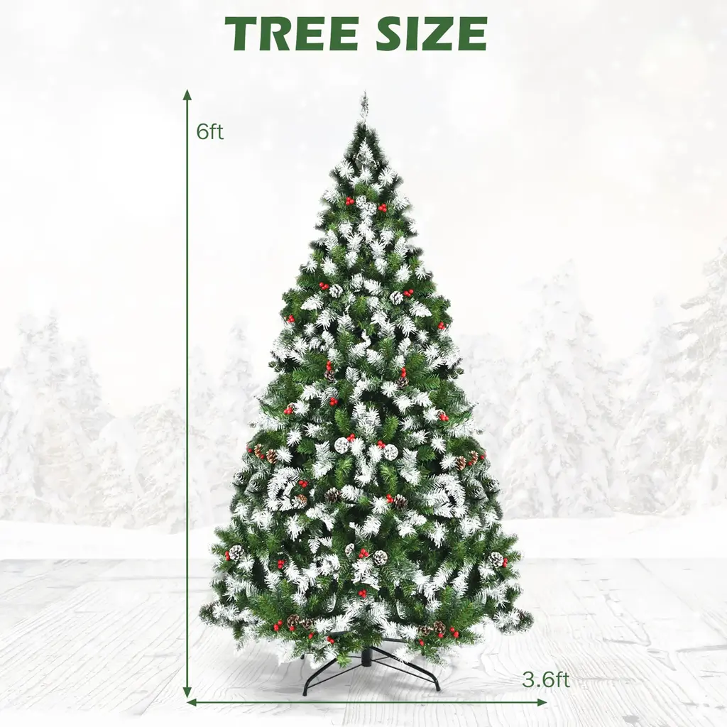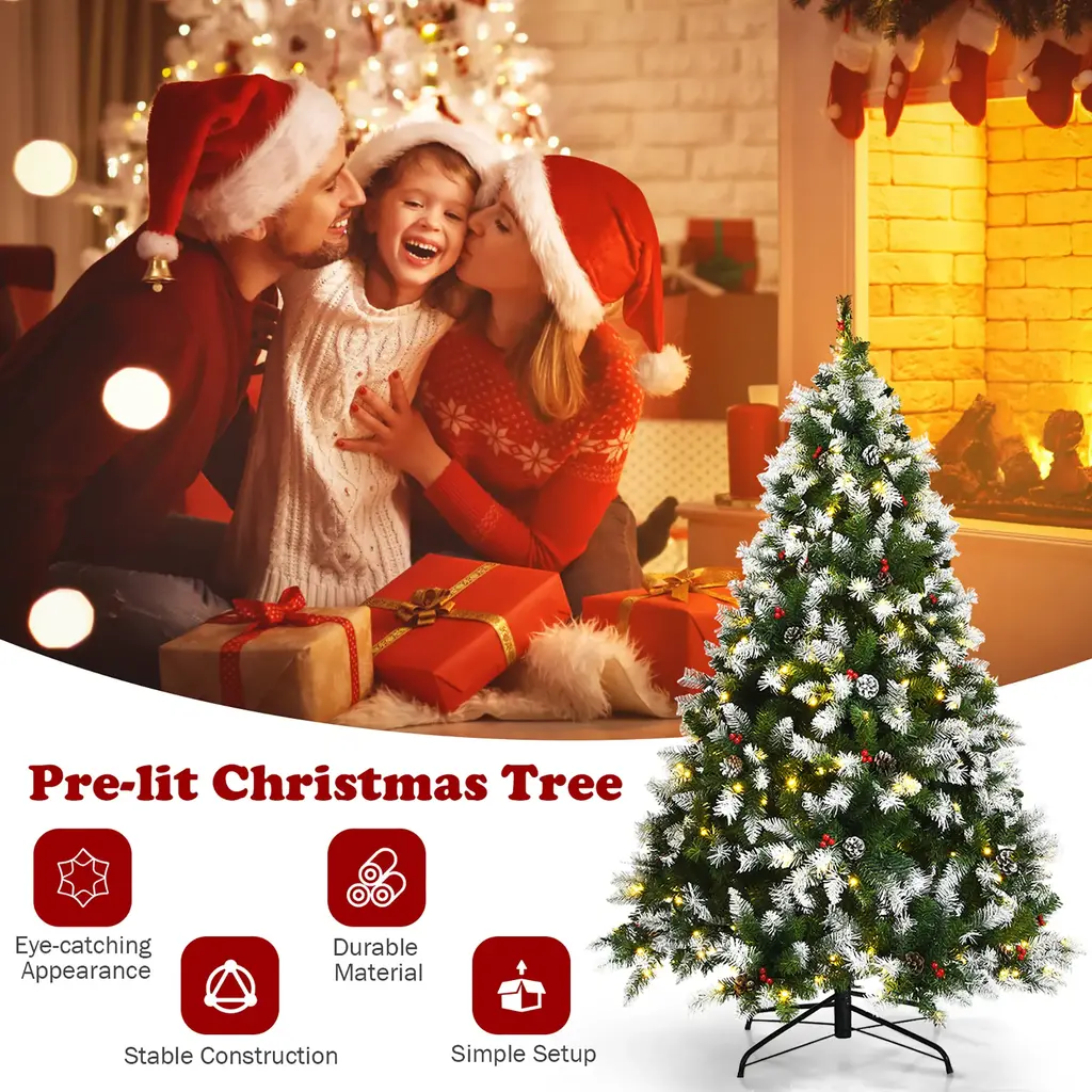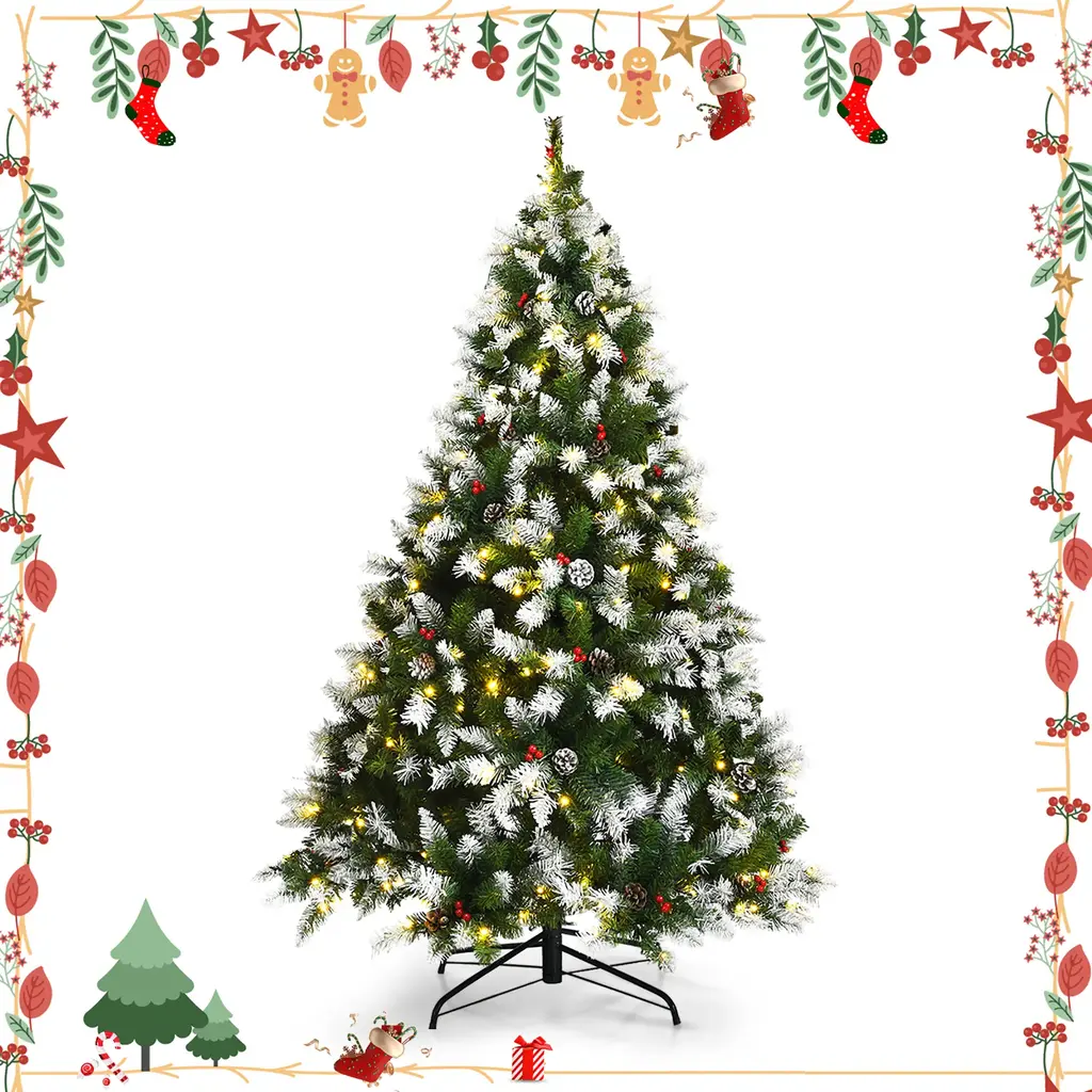Are you prepared for the coming new year? Our pre-lit 6/7.5/9 FT artificial tree will be the perfect addition to your home, office and school. Comes with a lot of branch tips and pine needles, each tree shows glorious appearance. And pine cones and red berries are hidden among the leafy tree, creating natural vividness. Besides, pre-strung shining LED lights illuminate home with warmth, spreading festival joy and wishes. Hope you enjoy the peaceful leisure time with family!Features:6Ft Christmas Tree7.5Ft Christmas Tree9Ft Christmas TreePackage Includes: