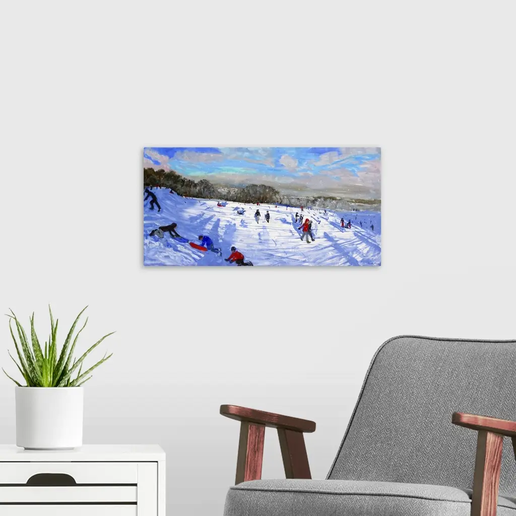 Snow Flurries, Allestree Park, Derby, oil on canvas. By Andrew Macara.