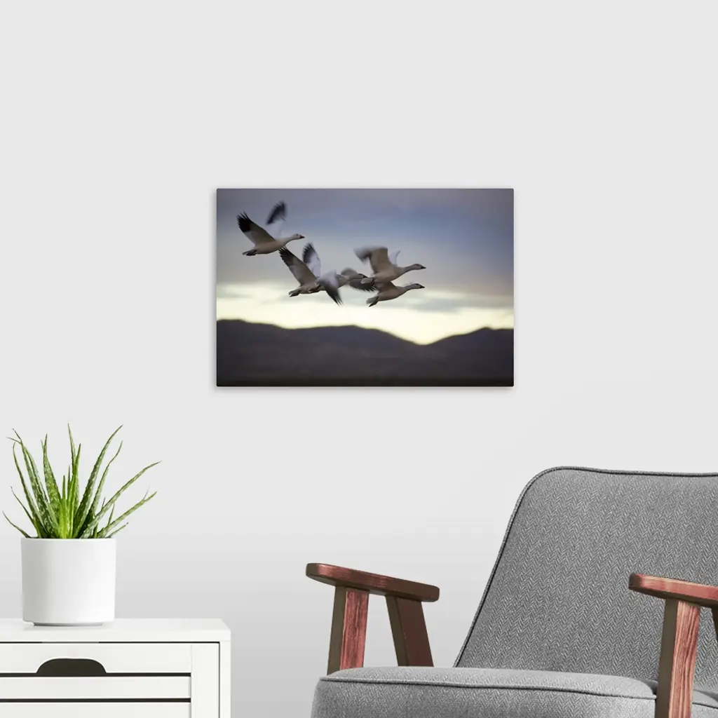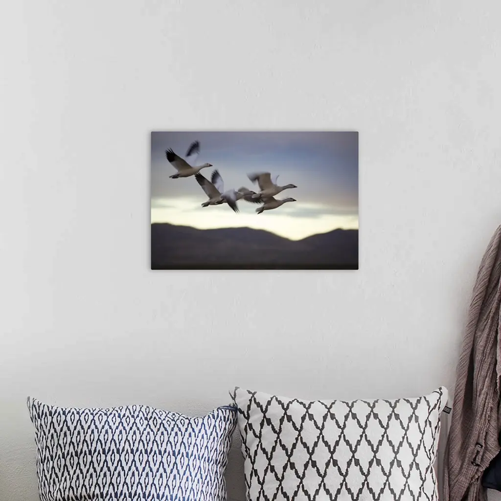 Snow Geese In Flight wall art for home and office decor. Discover canvas art prints, photos, mural, big canvas art and framed wall art in GreatBigCanvas.com's varied collections.