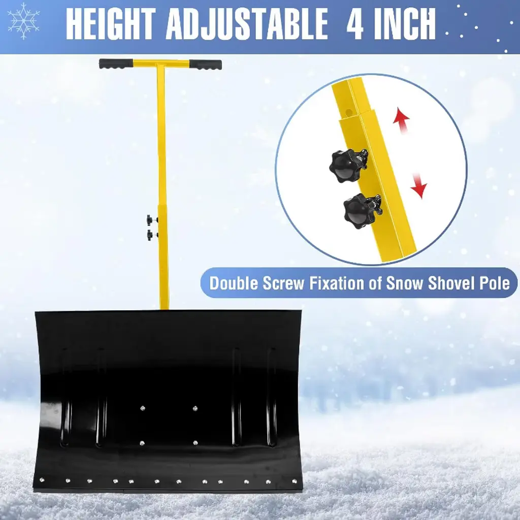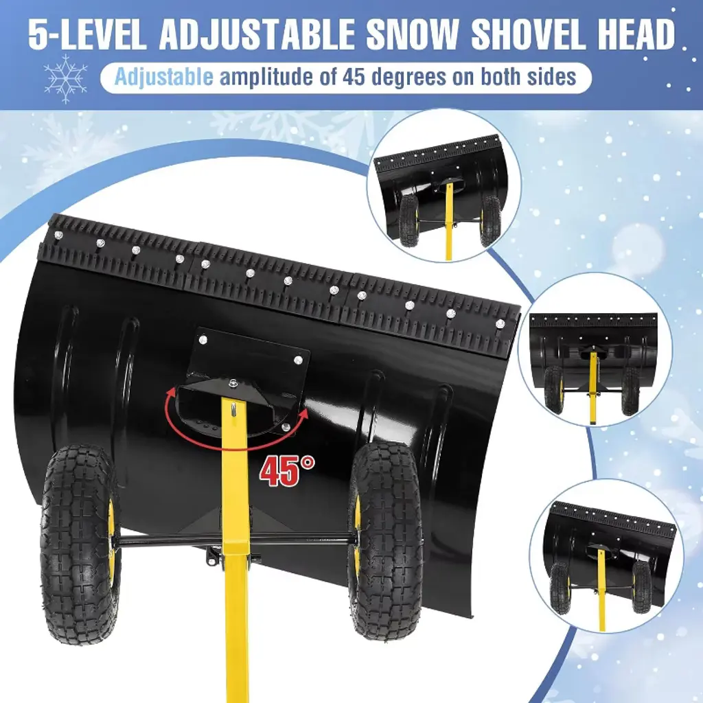 Snow Shovel With Wheels, Snow Pusher For Driveway, Snow Pusher Shovel With Adjustable Angle & Height Handle For Pavement, 29.1" W X 19.3" H