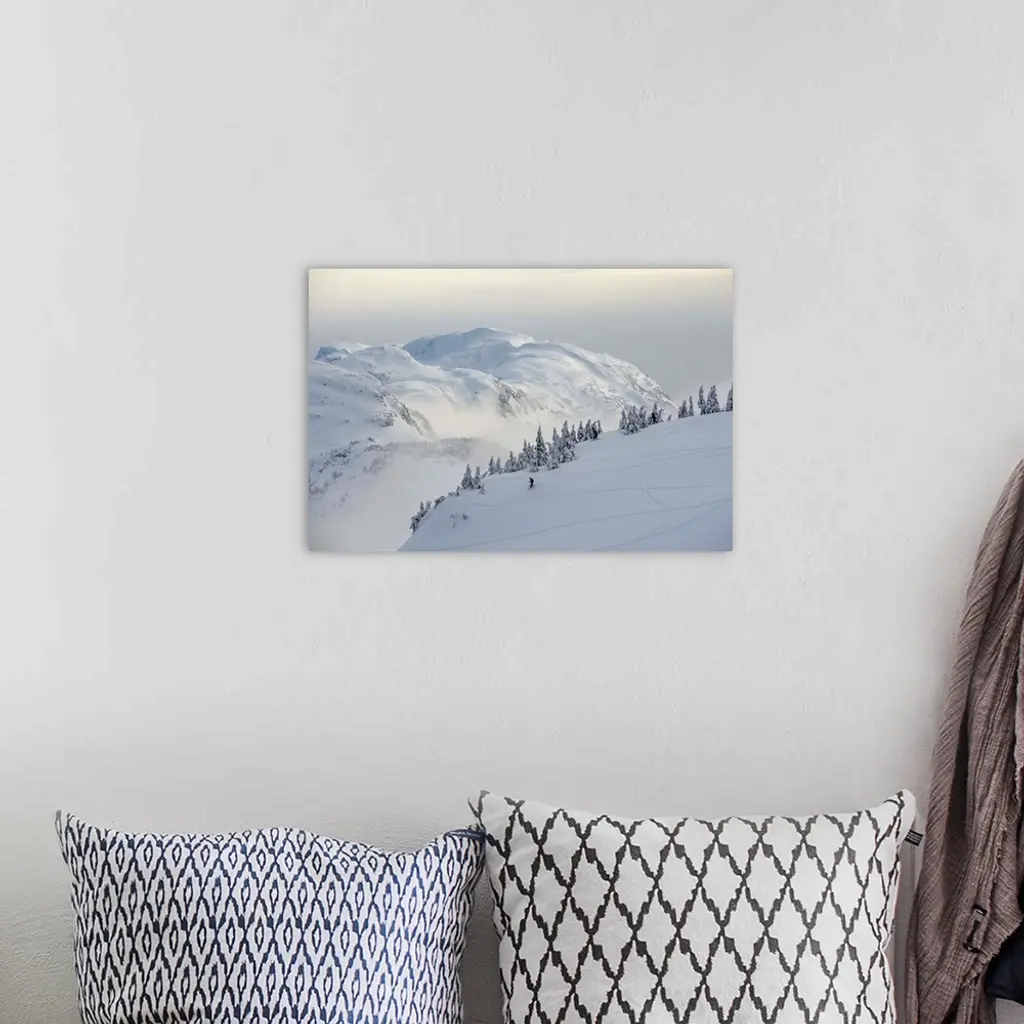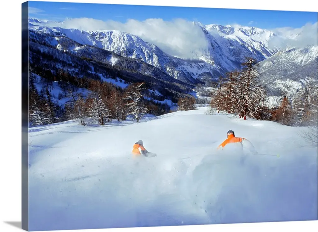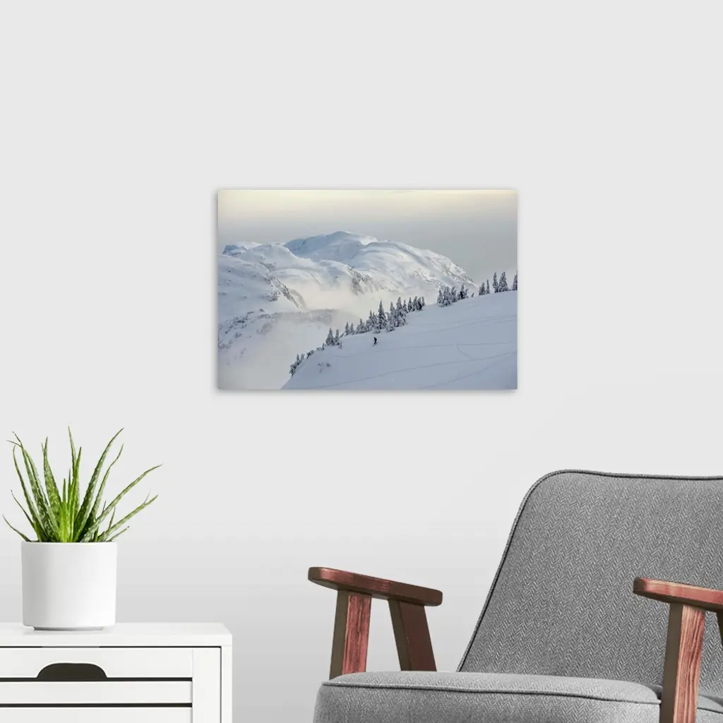 Snowboarders And Skiers Enjoy The Fresh Snow, Juneau, Alaska wall art for home and office decor. Discover canvas art prints, photos, mural, big canvas art and framed wall art in GreatBigCanvas.com's varied collections.
