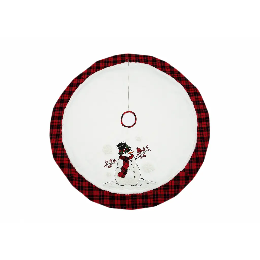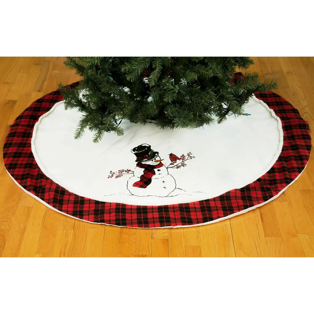 Snowman W/ Caroler Hat & Softy Tufted Snow Embroidered Christmas Treeskirt, 56-Inch - White - Polyester