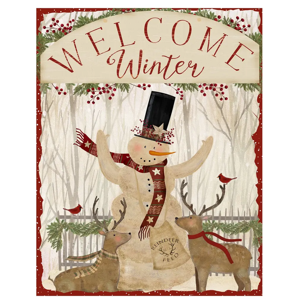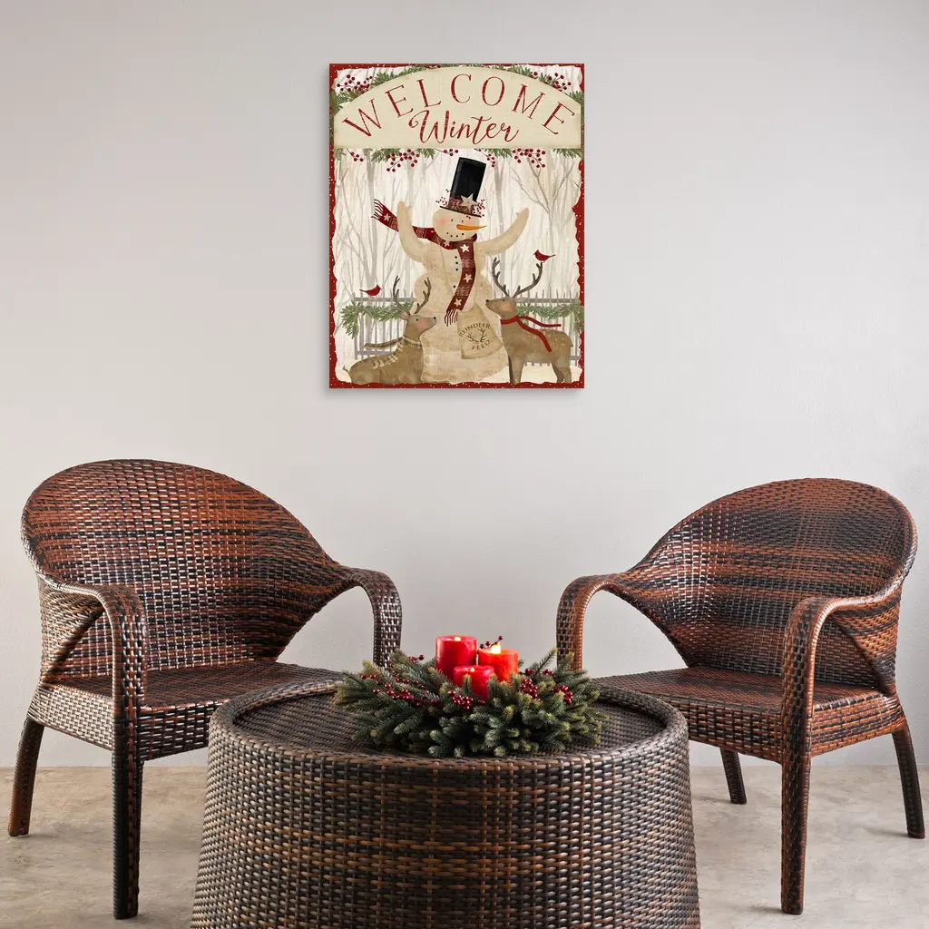 Santa's little reindeer stopped to visit their well-dressed niveous buddy for a tasty snack in Beth Albert's Snowman Welcome. Welcome the winter season into your home or preferable space with this pleasant wall adornment. Plus, your new masterpiece comes ready to hang: all you need are a few nails, a steady hand, and an eye for detail.