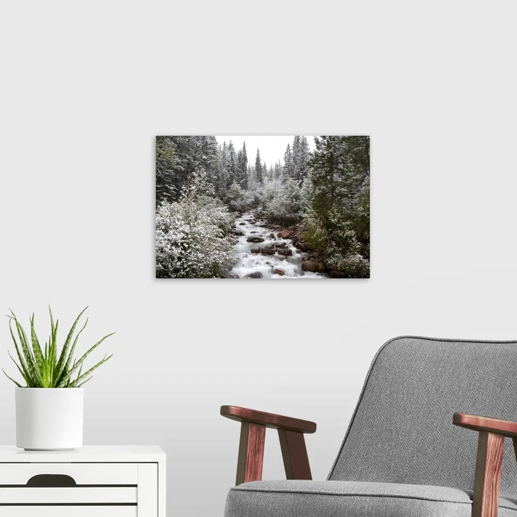 Snowy Foliage Along Stream In Autumn, Banff, Alberta, Canada wall art for home and office decor. Discover canvas art prints, photos, mural, big canvas art and framed wall art in GreatBigCanvas.com's varied collections.
