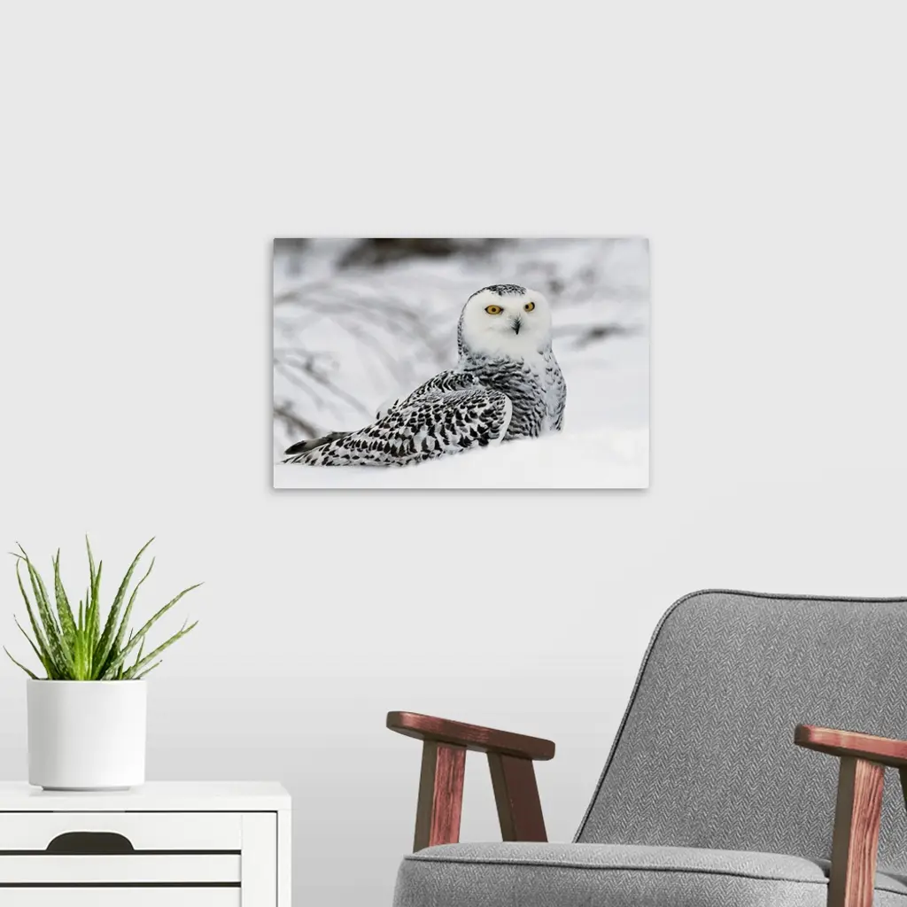 Snowy owl in snow, Michigan wall art for home and office decor. Discover canvas art prints, photos, mural, big canvas art and framed wall art in GreatBigCanvas.com's varied collections.
