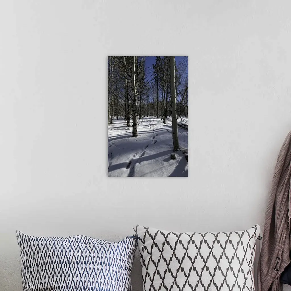 Snowy path through forest