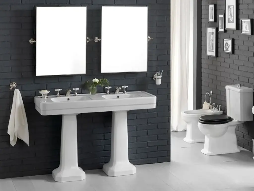 The SoFifties ceramic toilets are inspired by America in the 1950s. They exist with many matt or glossy colors (old white, black, gray, dark brown, light brown, ...) and in several models (floor mounted or suspended wc pan, monobloc toilet and high level cistern with chain and handle).Toilet Seat not included