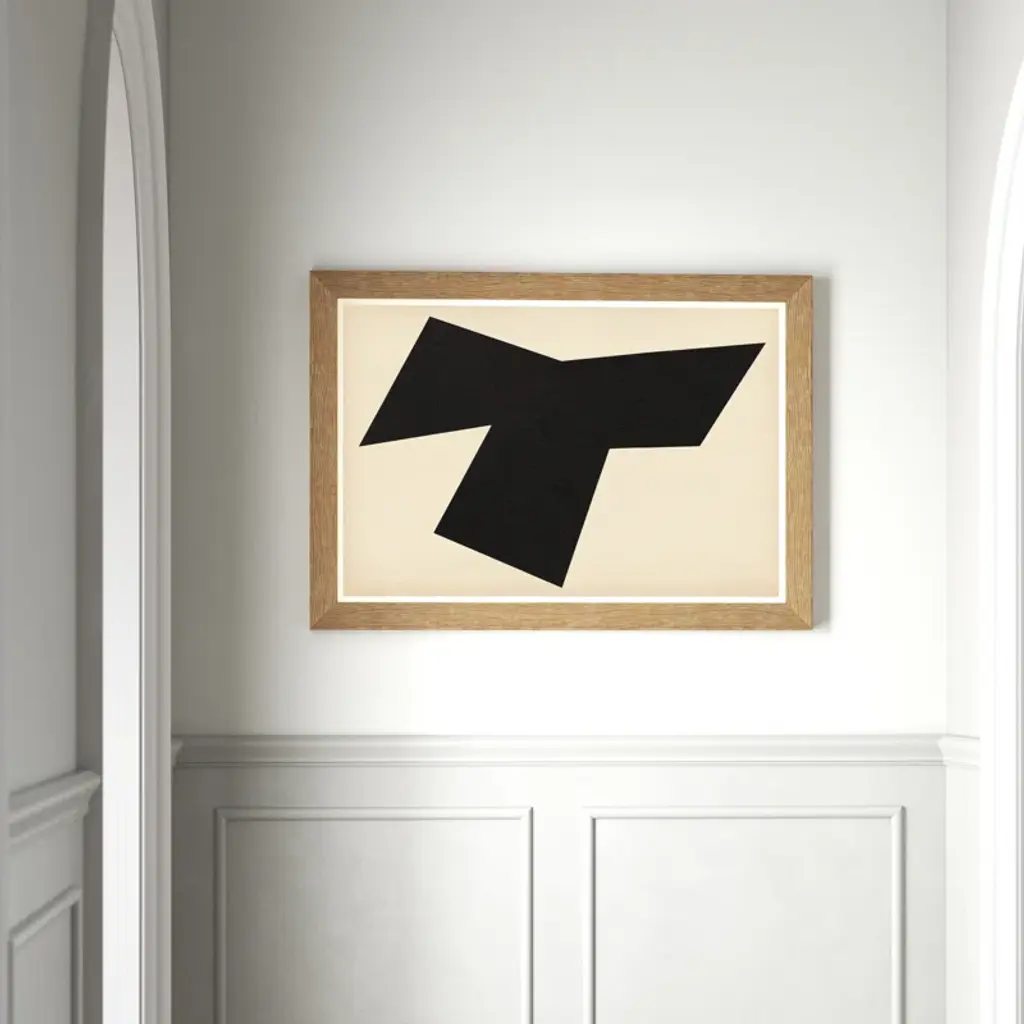 Ready to curate your gallery wall? Start with this abstract graphic art print on archival paper, which showcases a 9-sided shape in black over a solid beige background. We especially love how the crisp lines and neutral hues add visual interest to your living room, bedroom, or office walls without overwhelming your decor. Plus, this piece comes in a wood and metal frame, and the print is protected by a glass sheet for an elevated look.