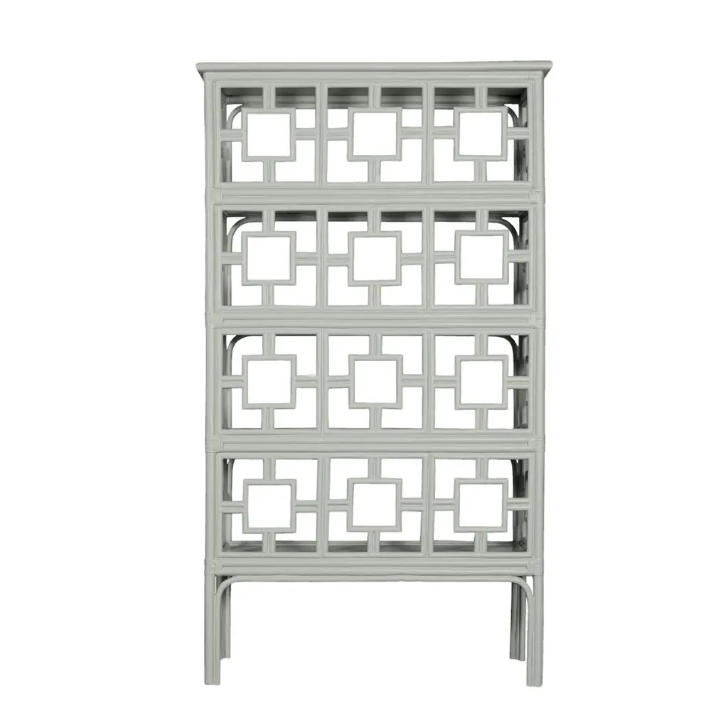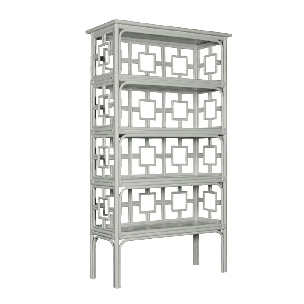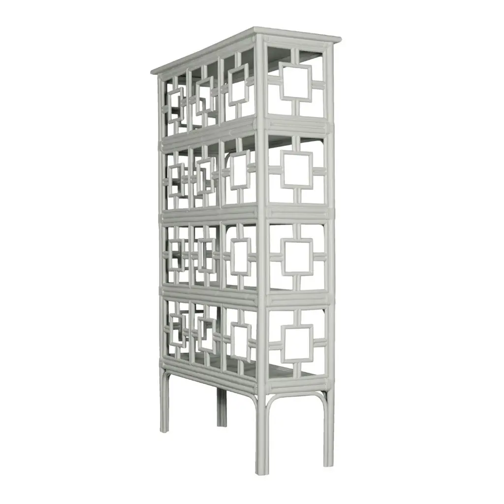 A clean silhouette and striking pattern make this etagere stand out in any setting! Display your books and decorative accessories with a hand-crafted rattan etagere finished to order just for you. A perfect mix of rattan, wood and master workmanship is what shapes the Sobe Etagere Bookshelf.