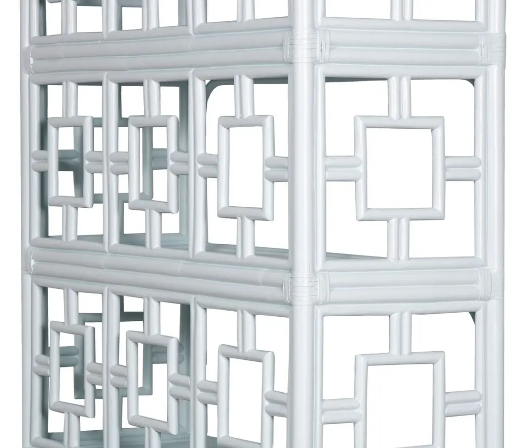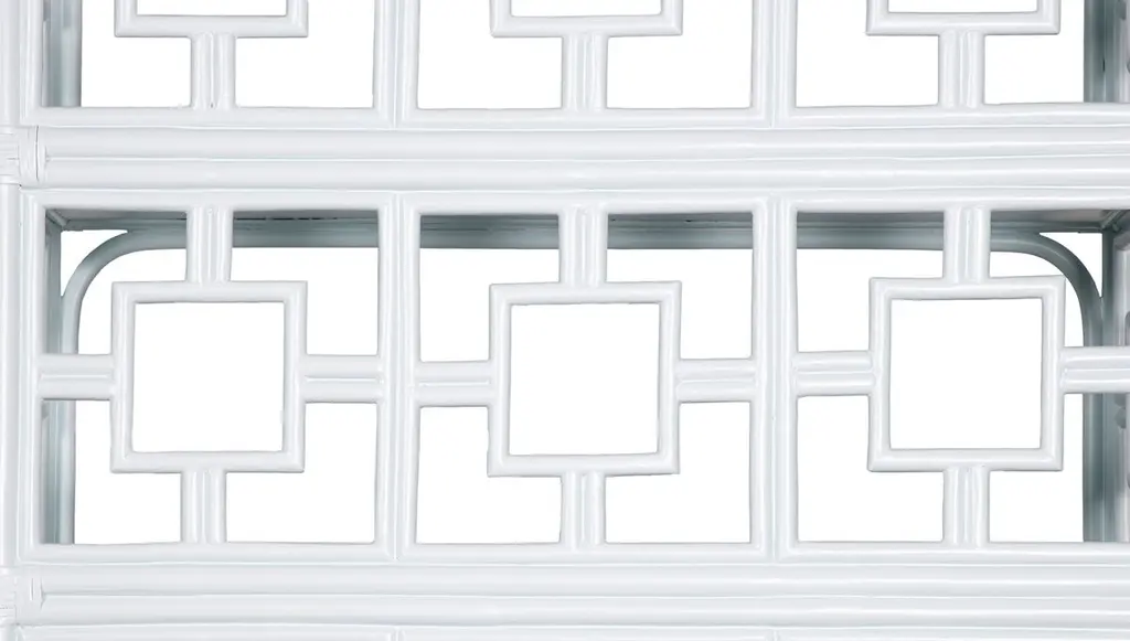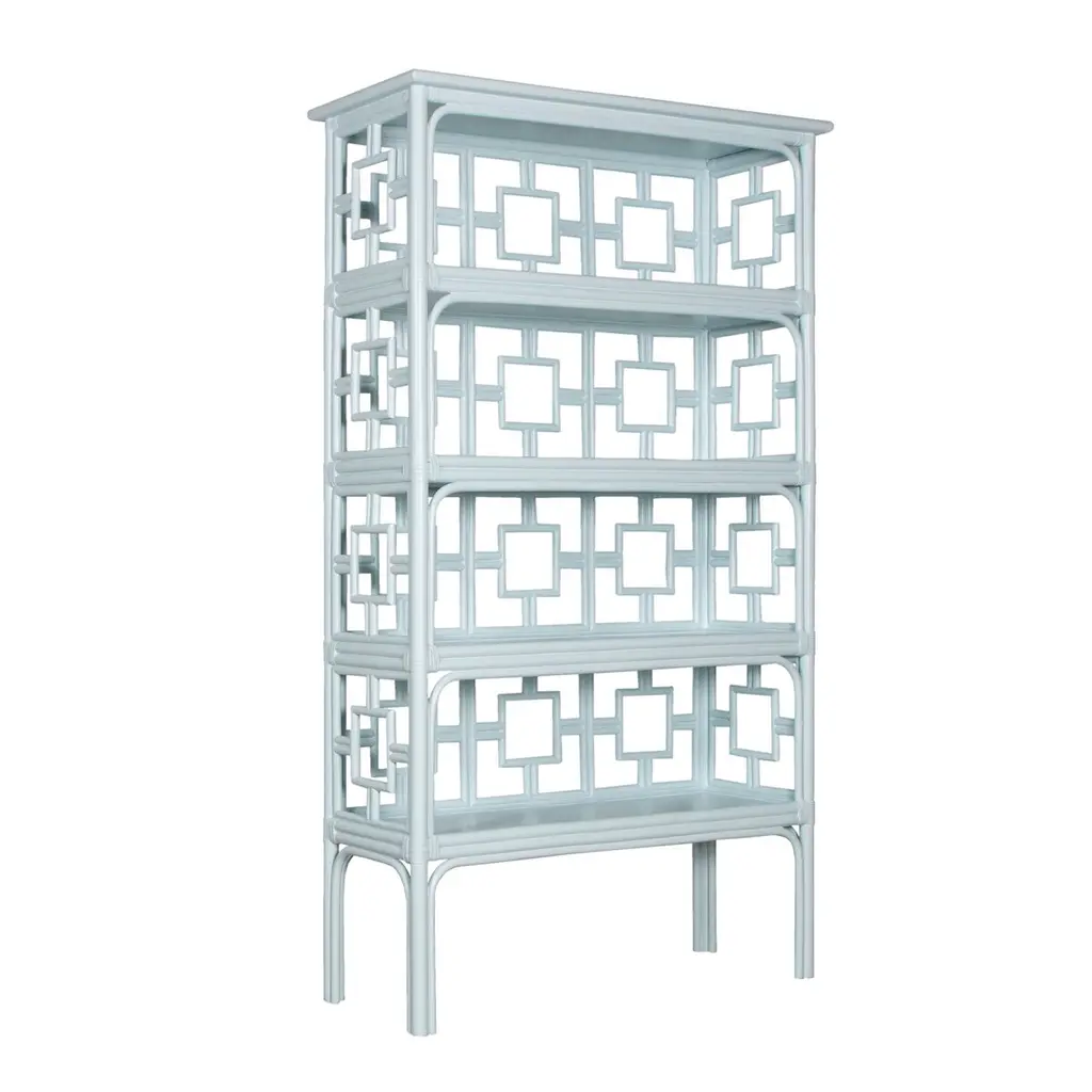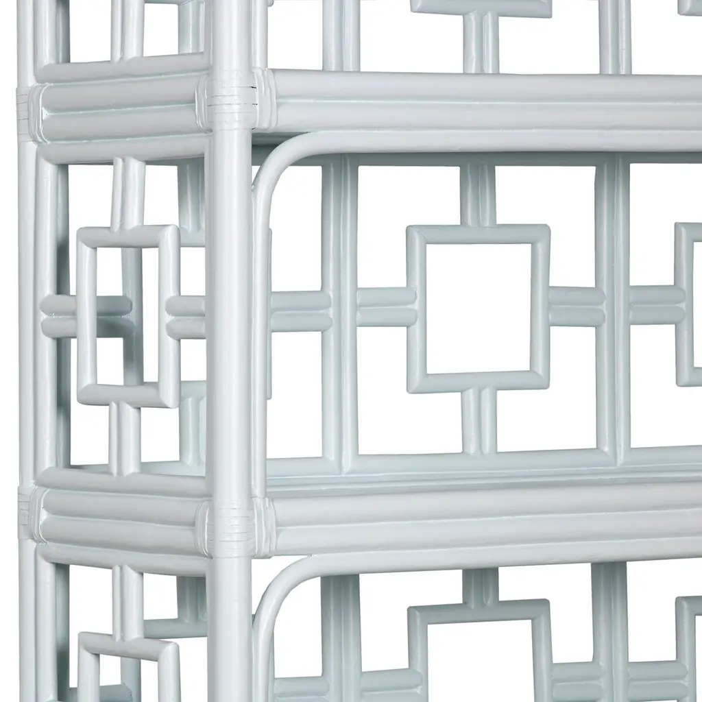 A clean silhouette and striking pattern make this etagere stand out in any setting! Display your books and decorative accessories with a hand-crafted rattan etagere finished to order just for you. A perfect mix of rattan, wood and master workmanship is what shapes the Sobe Etagere Bookshelf.