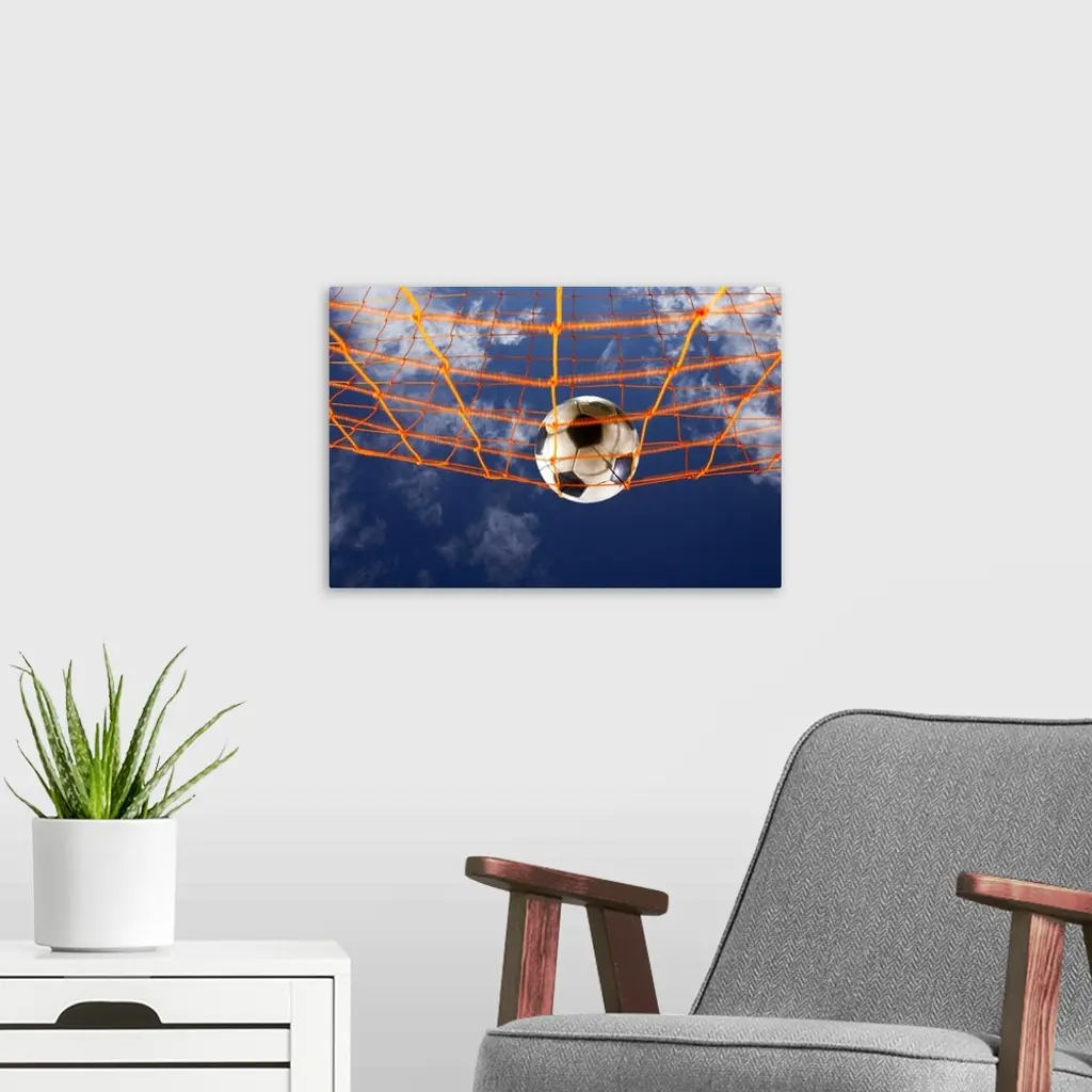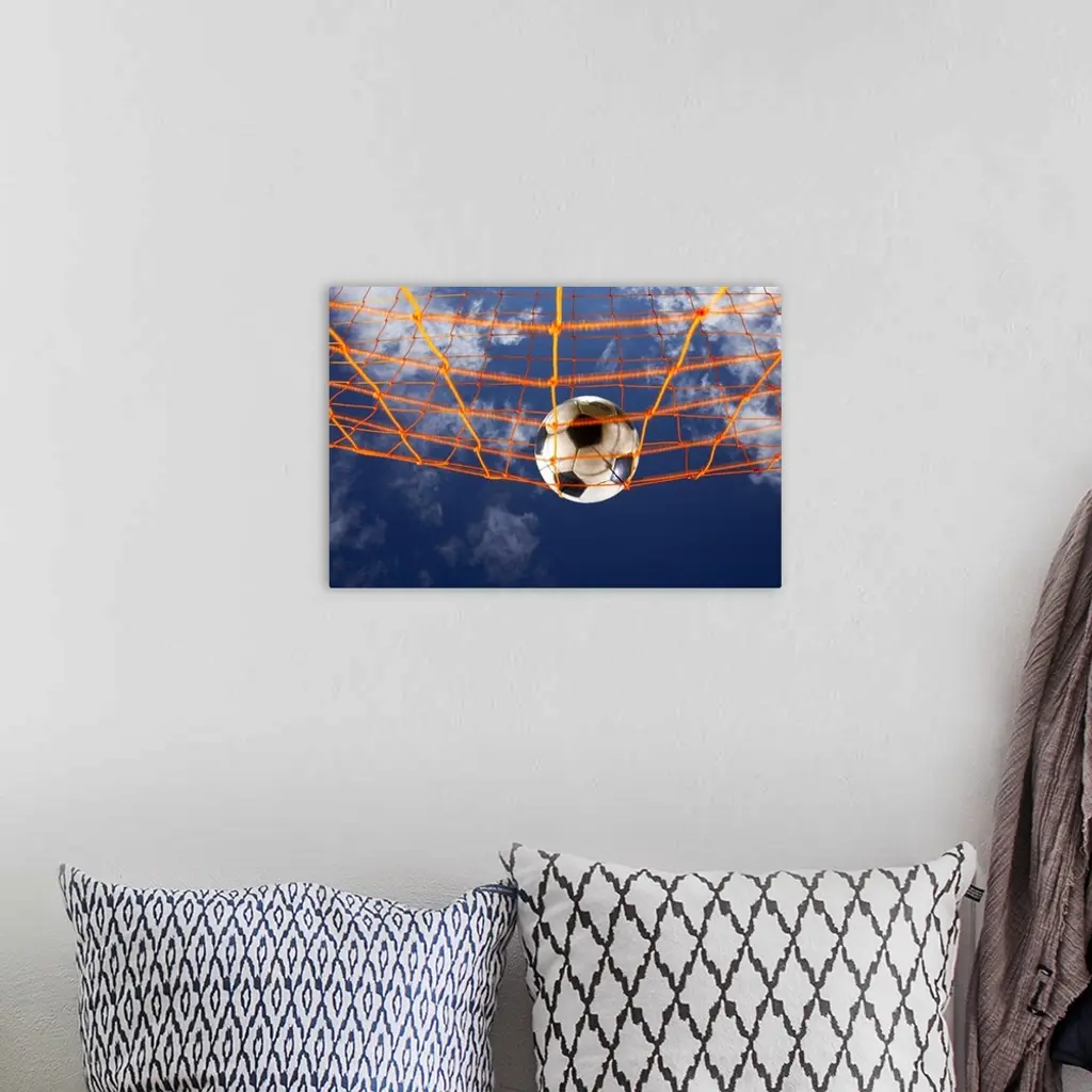 Soccer Ball Going Into Goal Net wall art for home and office decor. Discover canvas art prints, photos, mural, big canvas art and framed wall art in GreatBigCanvas.com's varied collections.