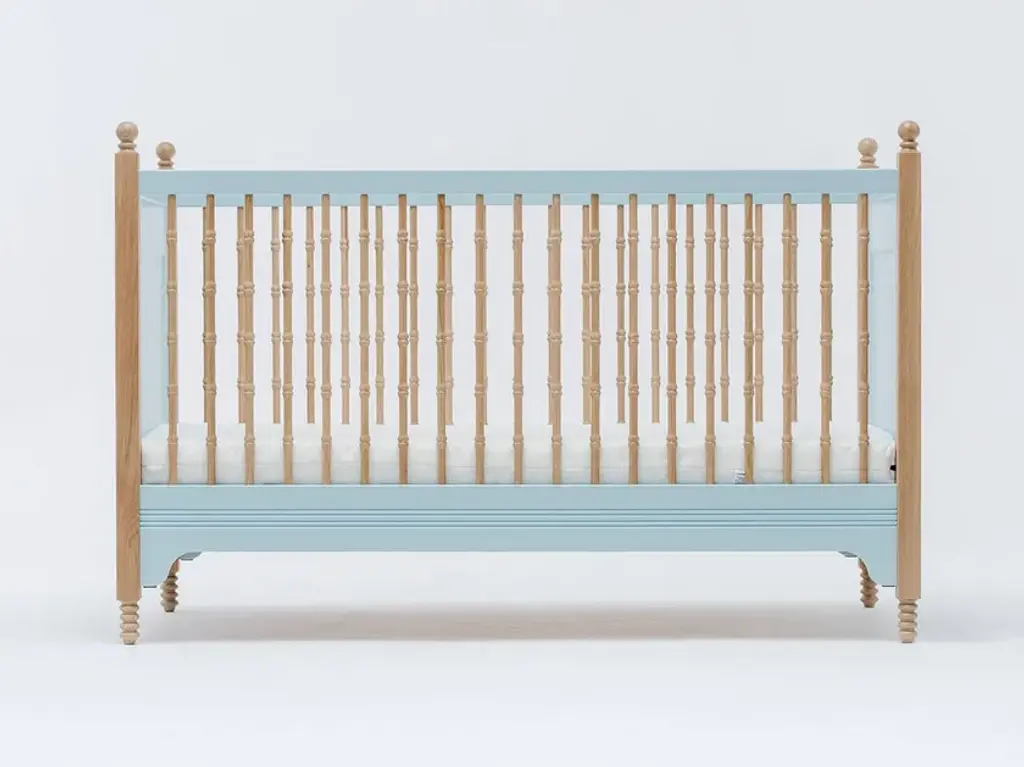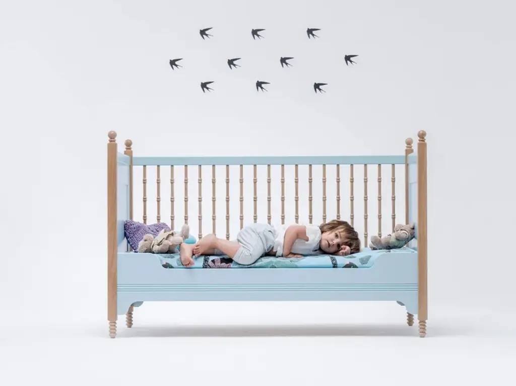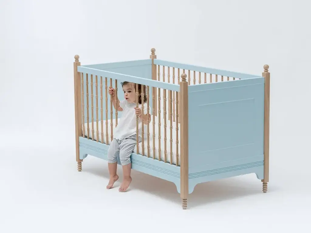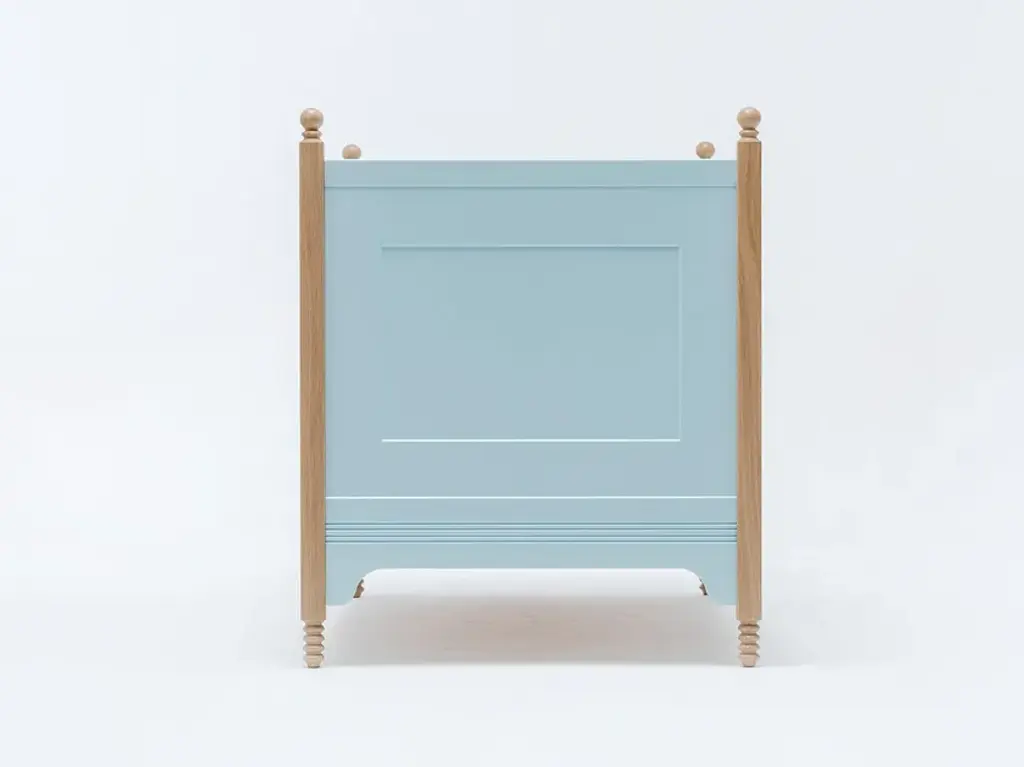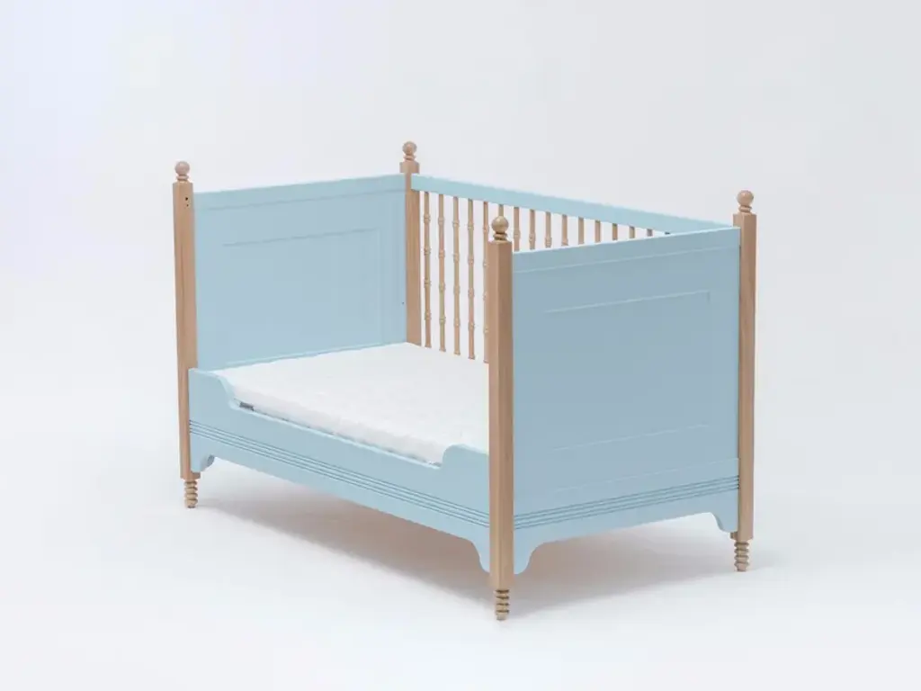 From the moment of birth, you make it your aim to give your child all the warmth, love and support that he needs. Sofia Collection was designed to help the parents and children in meeting their needs. Romantic, retro, a warm memory of childhood in a modern version, will combine perfectly with other furniture in your child’s room.Inspired by the grandma story telling, the Sophia Crib plays with classic form and contemporary. A great, retro design. Thoughtfully considered, the Sofia Crib meets modern parent’s needs, especially safety with solid construction.The Sofia bed is made of the materials of highest quality, with the use of the most modern carpenter tools and technology. It is therefore reliable and made to last a long time. It’s also practical. The crib grows with the child – it can be used until the age of five. The mattress can be fixed on two heights, the rungs can be removed and with the extra side, the bed forms a couch, for toddlers and older children who like to walk at night, to visit their parents (toddler bed conversion).It is possible to order a bed with the painted elements in a color of your choice.Material – varnished oak, varnished mdf. This crib is made from the highest quality sustainable domestic oak and with 100% non-toxic and/or food safe finishes. This crib is the top pick for Eco-Families.A crib mattress no thicker than 15 cm should be used. Mattress – dimensions 140 x 70 cm – sold separately.