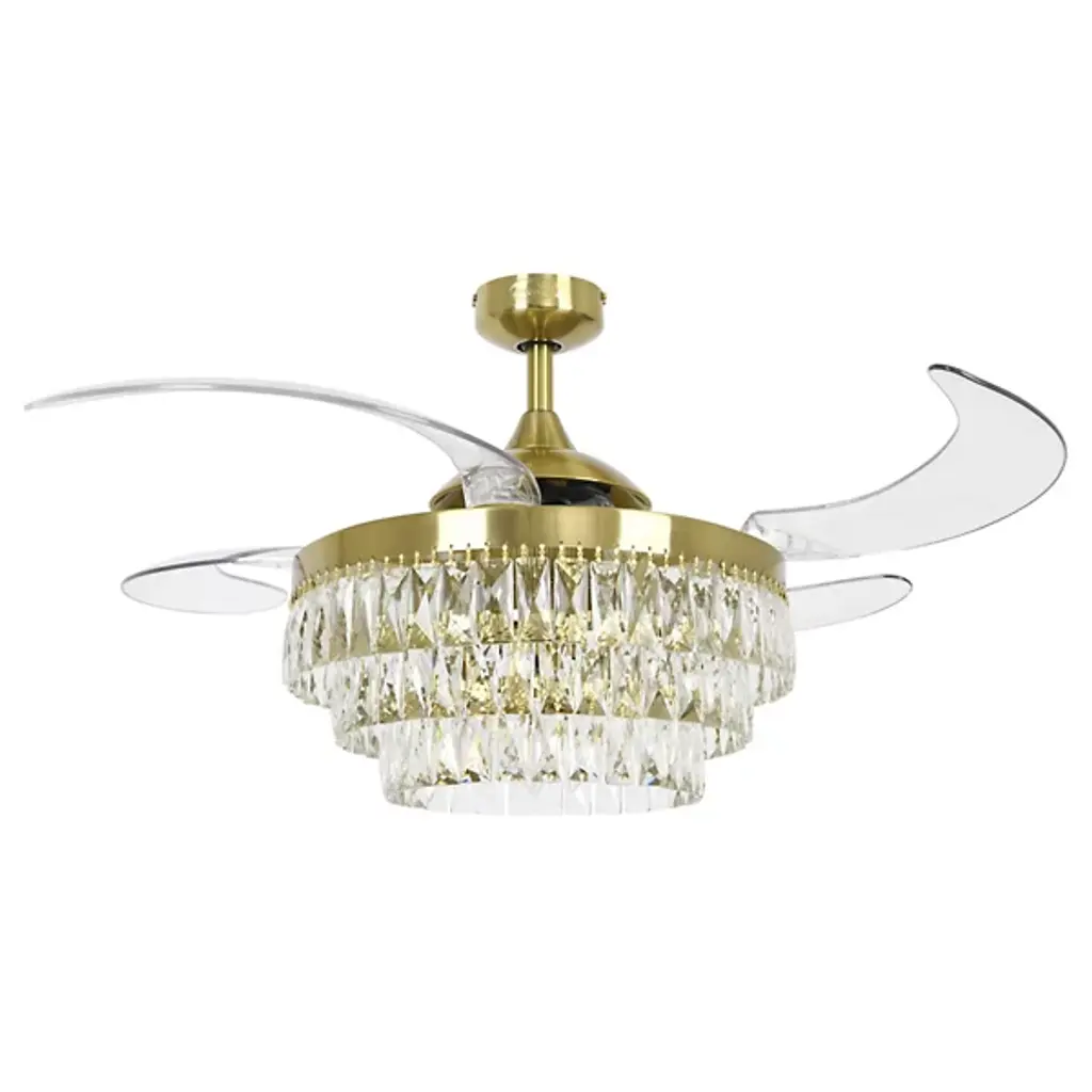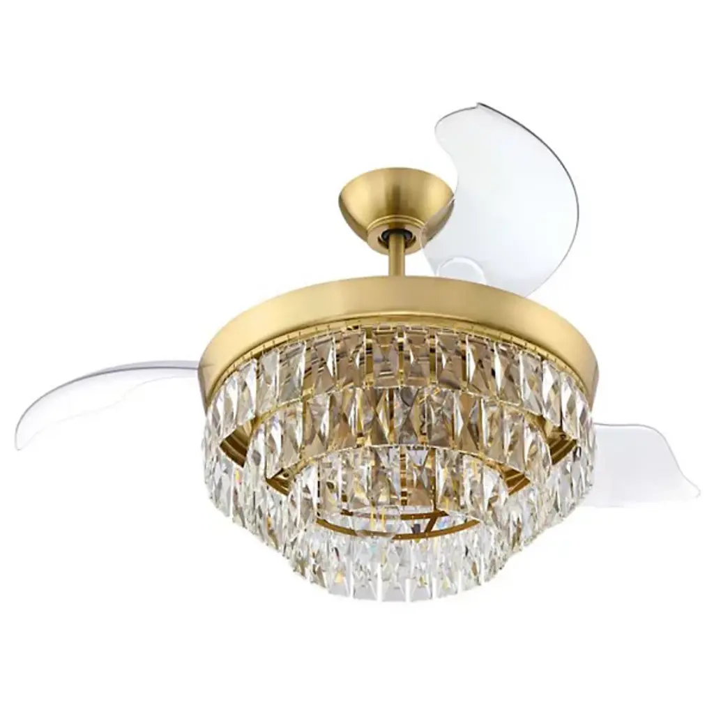 The Sofia Smart Fandelier from Craftmade Fans represents the convergence of exquisite design and functionality. This fixture gives you the luminous capability of a chandelier combined with the cooling power of a contemporary fan. The gorgeous glass takes on a tiered, faceted look that makes a bold statement. 3 finely contoured clear blades complete the look, rotating at 6 speeds in forward and reverse courtesy of a dependable DC motor. This fandelier is composed of premium materials, including silicon steel, aluminum, copper, and porcelain, reflecting its superb quality.