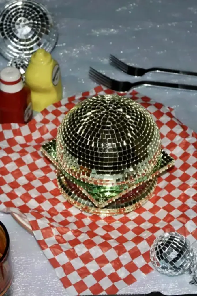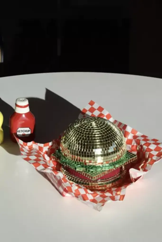 Your home decor just got more delicious. 3D printed and hand tiled, this Disco Cheeseburger is the perfection addition to your pop culture home decor. Each Cheeseburger includes 2 buns, a patty, cheese, and juicy lettuce. Each Disco Ball is handmade, some minor imperfections and unique flaws may be present due to the handmade nature of the craft, but that’s what adds to their charm and quirkiness! **Content + Care** \-PLA and glass \-Gently wipe clean with damp washcloth to prevent dust buildup **Size + Fit** \-6" x 6" x 5" inches