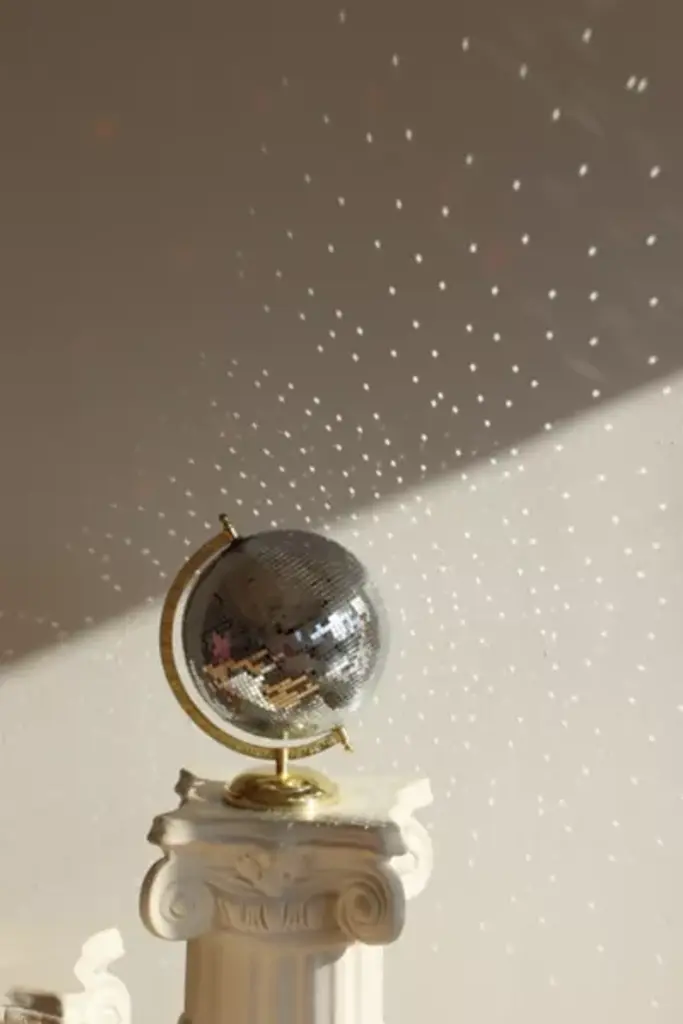 This stunning interior decor piece will catch anyone’s eye but is impossible to miss when the sun hits \- The globe is fully functional and can spin when prompted Each Disco Ball is handmade, some minor imperfections and unique flaws may be present due to the handmade nature of the craft, but that’s what adds to their charm and quirkiness!