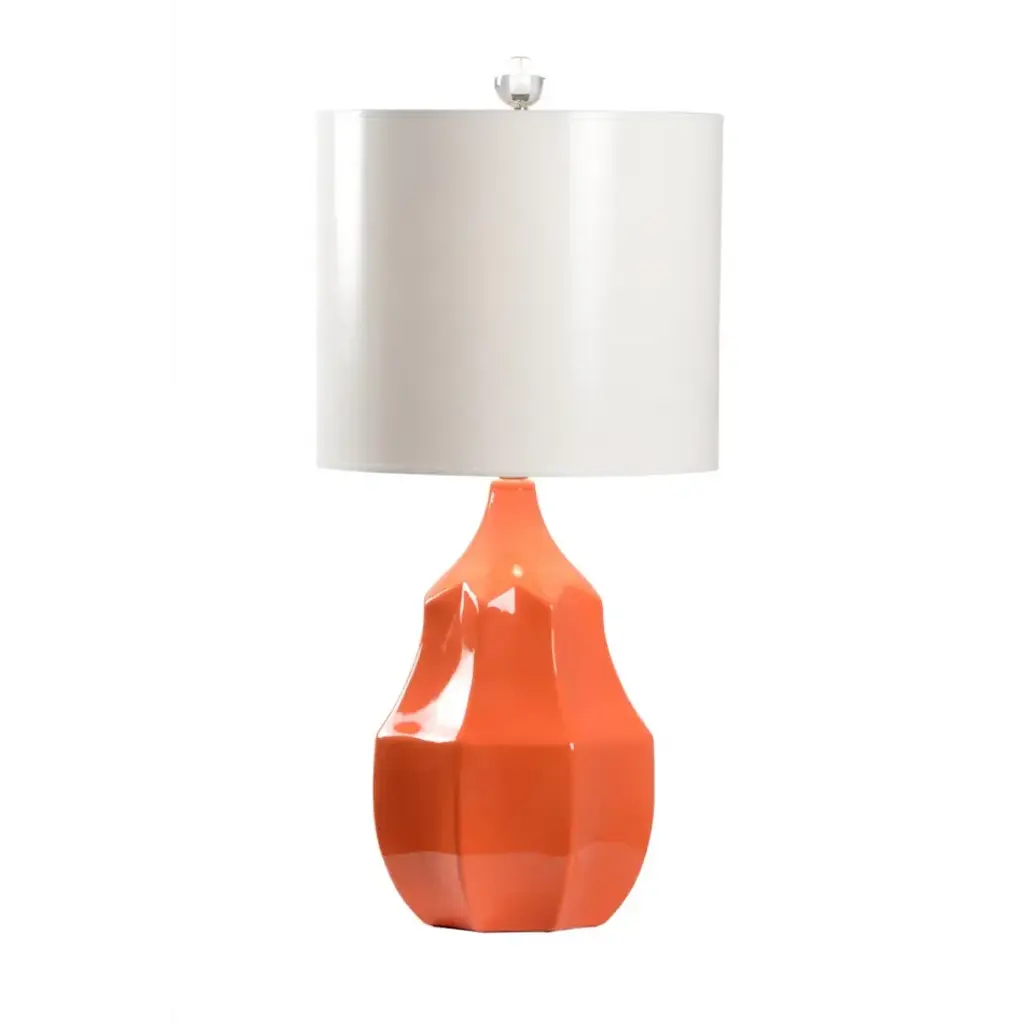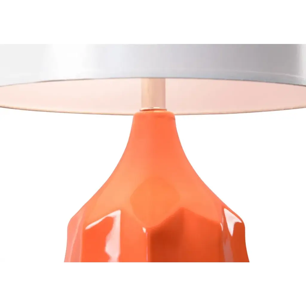 Enliven Your Home Decor With Our Soft Glow Lamp. This Vibrant Orange Glazed Ceramic Features A Textured Body That Reflects Light Throughout Your Space. A Super White Flossy Drum Shade Tops This Whimsical Table Lamp Ideal For A Bedroom Or Game Room.