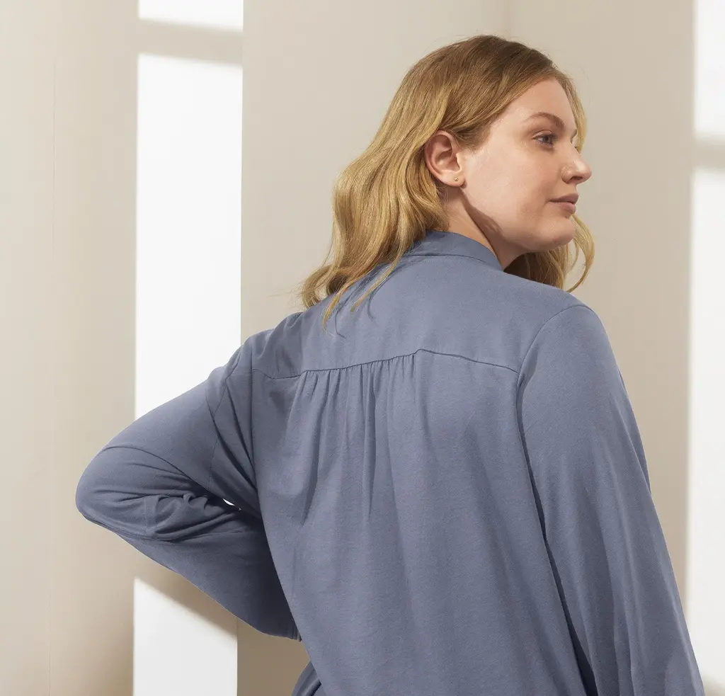 The familiar comfort of your favorite lived-in t-shirt, now elevated for an exceptional experience. We crafted a knit fabric unlike any other, using only the highest quality, 100% organic cotton threads to create a natural softness and stretch that never clings to the body. The fabric is made even softer with our Luxury Soft-Wash—a gentle process that uses natural enzymes to relax the fibers, drawing out a more sumptuous feel. The Fit Relaxed yet feminine – we recommend sizing down The Feel The softest knit with the most naturally sumptuous hand-feel The Look Effortless and sophisticated with contrast rolled-edge piping