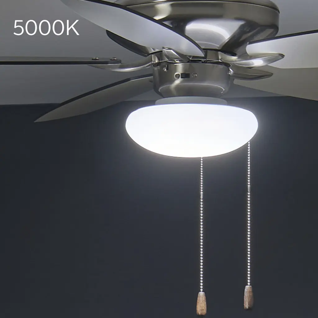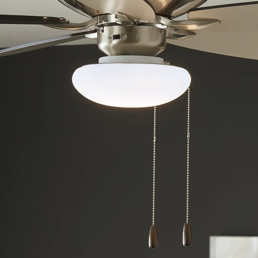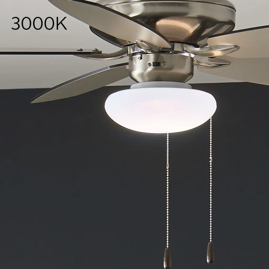 The 1900L 9" Universal Light Kit with its sleek, slim styled white diffuser blends across an array of lifestyles to coordinate with multiple fan types. An update to a classic shape, this high efficiency LED light source offers a clean, soft, modern feel with no visible finish trim on the kit that allows it to easily work with any finish. Dimmable and CCT Selectable, the light kit provides options to not only adjust lumen output to accommodate lightened needs of a room, mood, or time of day, but also options to change light color between soft white and daylight to accommodate decor and user preference during installation.