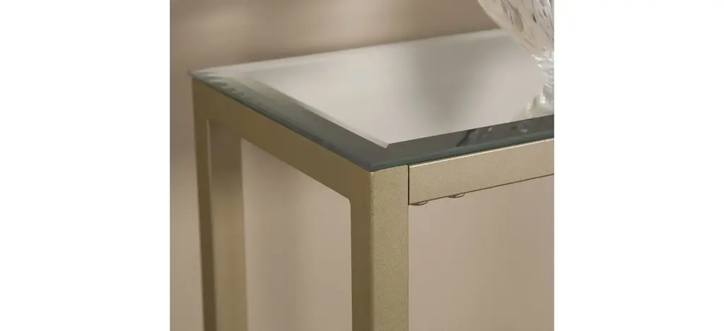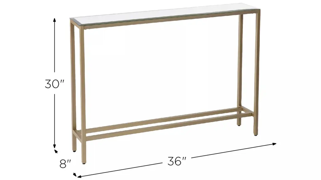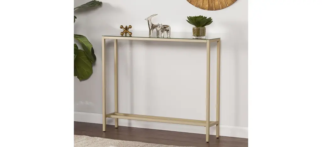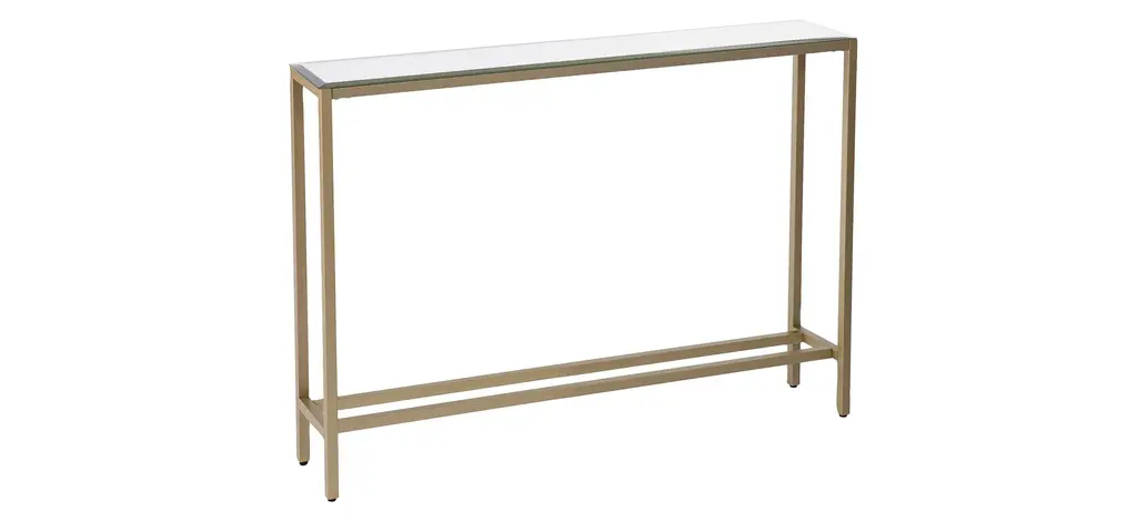 The Solange Console Table provides a clean, metallic lines add a subtle accent to any room, complete with beveled mirror reflection. Utilize this narrow console table to display youreye-catching accessories behind the sofa, craft a hallway hub, or give yourself the recognition you deserve by showcasing certifications and awards in your office space.