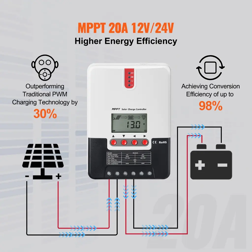 Solar Charge Controller Flooded And Lithium Battery Charging - 20a