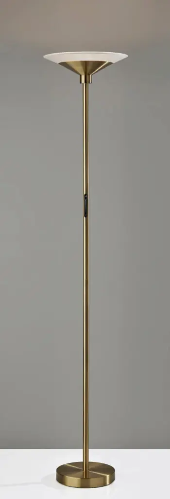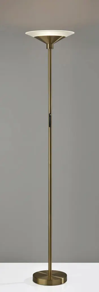 Elevate your interior design with the exquisite 5121-21 Solar LED Torchiere, a fusion of timeless elegance and cutting-edge technology. This torchiere lamp, adorned with a radiant brass finish, exudes sophistication and refinement. The frosted glass shade bathes your space in a soft, inviting glow, creating an atmosphere of warmth and comfort. The Solar Torchiere boasts a powerful 24W integrated LED that illuminates your surroundings with energy-efficient brilliance. What sets this lamp apart is its Full Range Touch Dimmer Switch, allowing you to effortlessly adjust the brightness to suit your preferences. Furthermore, it offers versatility with five color temperature settings, enabling you to tailor your lighting experience. Experience the perfect blend of classic aesthetics and modern innovation with the 5121-21 Solar LED Torchiere, a beacon of style and functionality.Timeless Brass Finish: The Solar LED Torchiere features a timeless brass finish that complements classic and contemporary interiors alike.Frosted Glass Shade: Emitting a gentle, diffused light, the frosted glass shade creates an inviting ambiance that enhances any room.Powerful Integrated LED: Equipped with a robust 24W integrated LED, this torchiere provides energy-efficient, ample lighting for your space.Full Range Touch Dimmer: The Full Range Touch Dimmer Switch allows you to precisely control brightness levels to suit various lighting needs.5 Color Temperature Settings: Customize your lighting environment with five color temperature settings, enabling you to create the ideal atmosphere for any occasion.