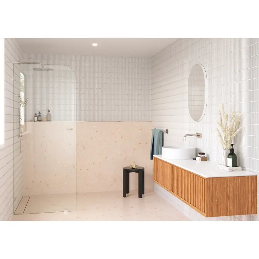 Enhance natural light and soften the edges of your bathroom with the Solaris, our stylish fixed shower panel. Taller than most competitor shower panels, each frameless 3/8” tempered glass panel comes in a standard 78” height. Glass is treated on both sides with EnduroShield coating, which aids in repelling water and soap residue, allowing the panels to be fully reversible. In addition, our superior quality solid brass hardware is available in a variety of color finishes to suit any bathroom. With our extensive range of fixed shower panel sizes, the sophisticated Solaris enclosure by Glass Warehouse features an elegantly curved silhouette that adds a sense of comfort and warmth to your space.
