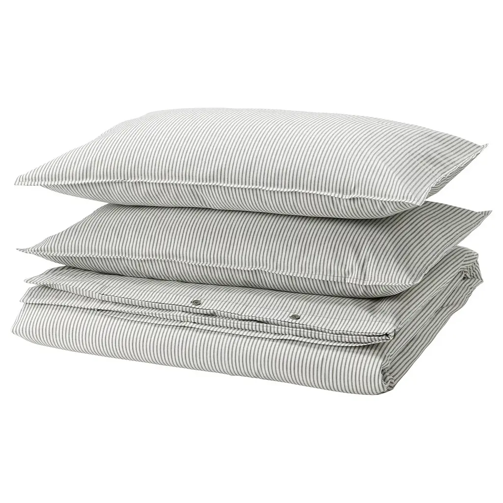 SOLFIBBLA Duvet cover and pillowcase(s) - white green/stripe Full/Queen (Double/Queen). Made of 100% cotton - a natural and durable material that becomes softer with every wash. Cotton is a soft, natural material that breathes, absorbs moisture and feels comfortable against your skin.