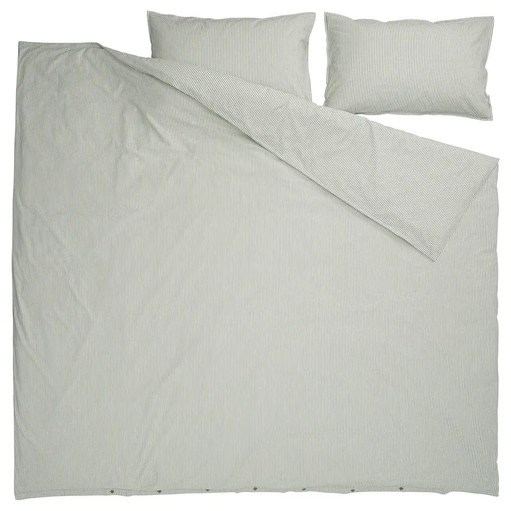 Solfibbla Duvet Cover And Pillowcase(s) - White Green/stripe Full/queen (Double/queen)