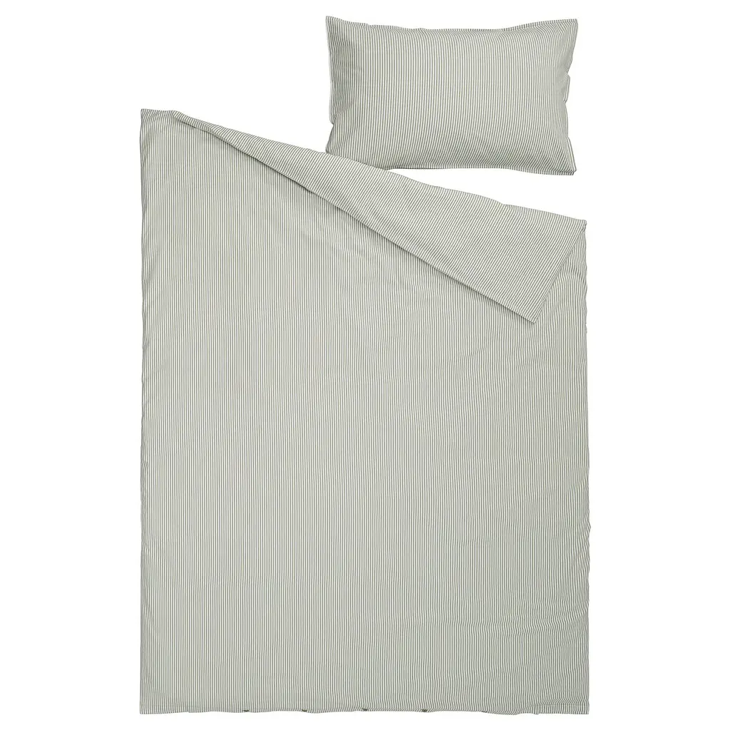 Solfibbla Duvet Cover And Pillowcase(s) - White Green/stripe Twin