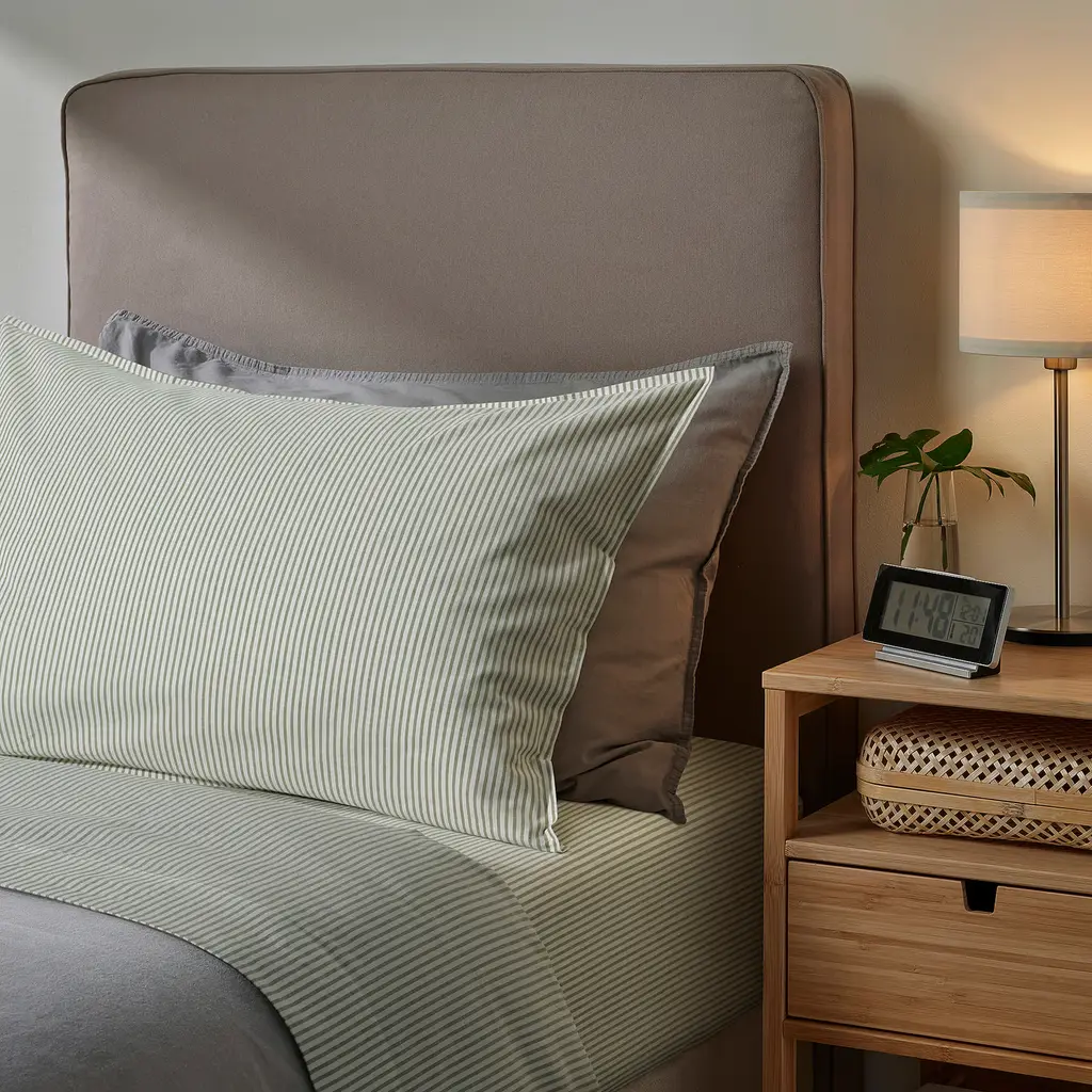 Solfibbla Sheet Set - White Green/stripe Twin